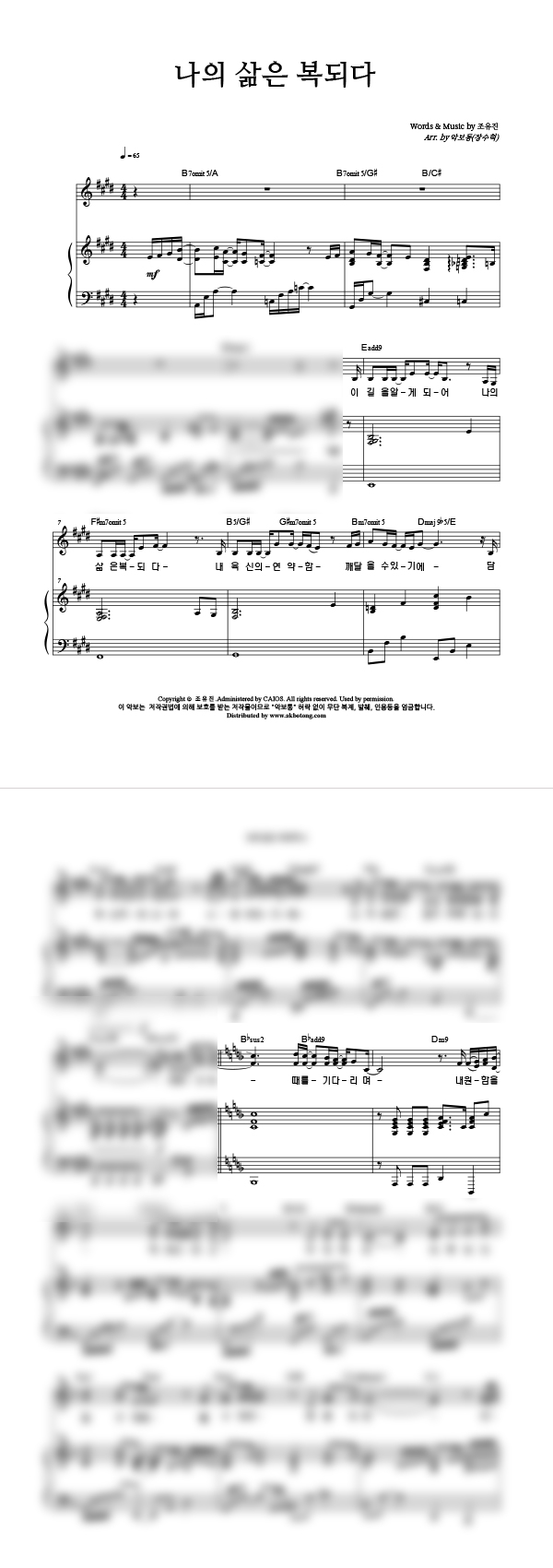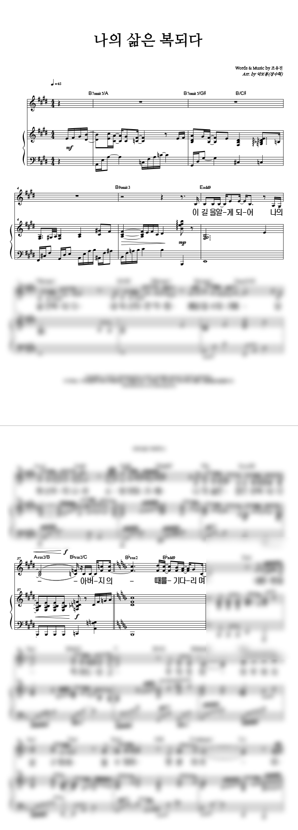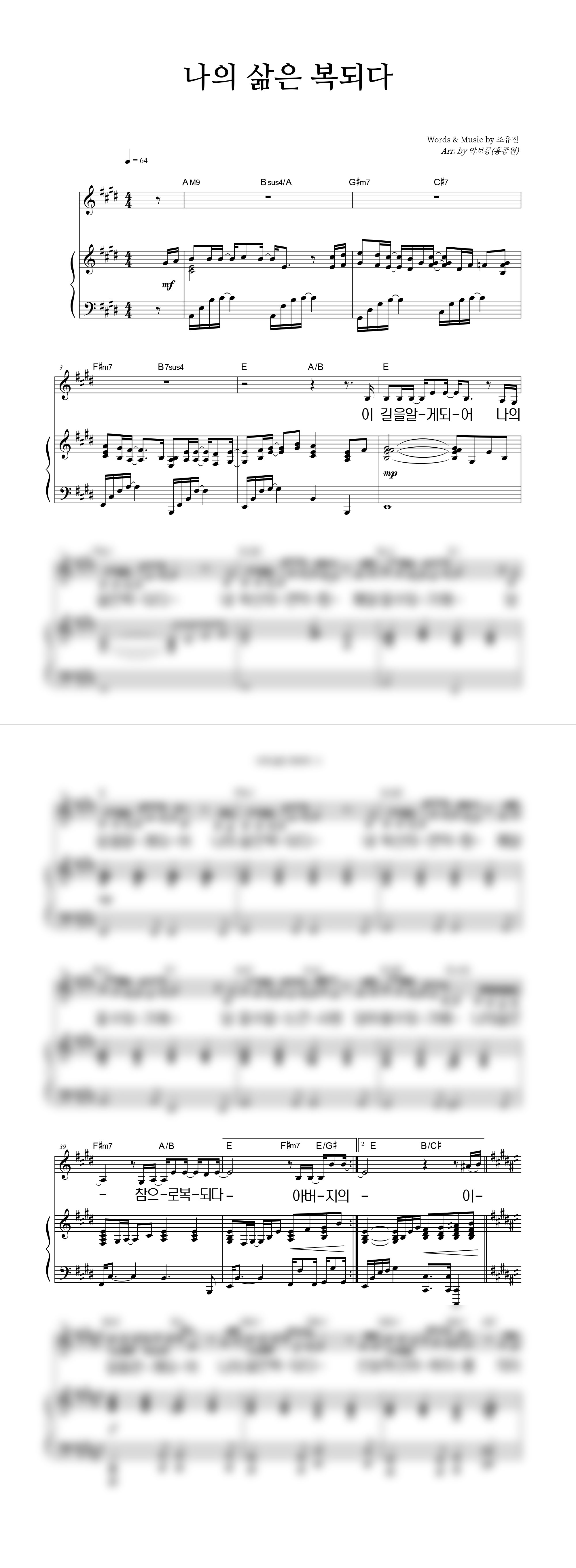 | 나의 삶은 복되다 | 성가 2부 + 피아노 반주 |