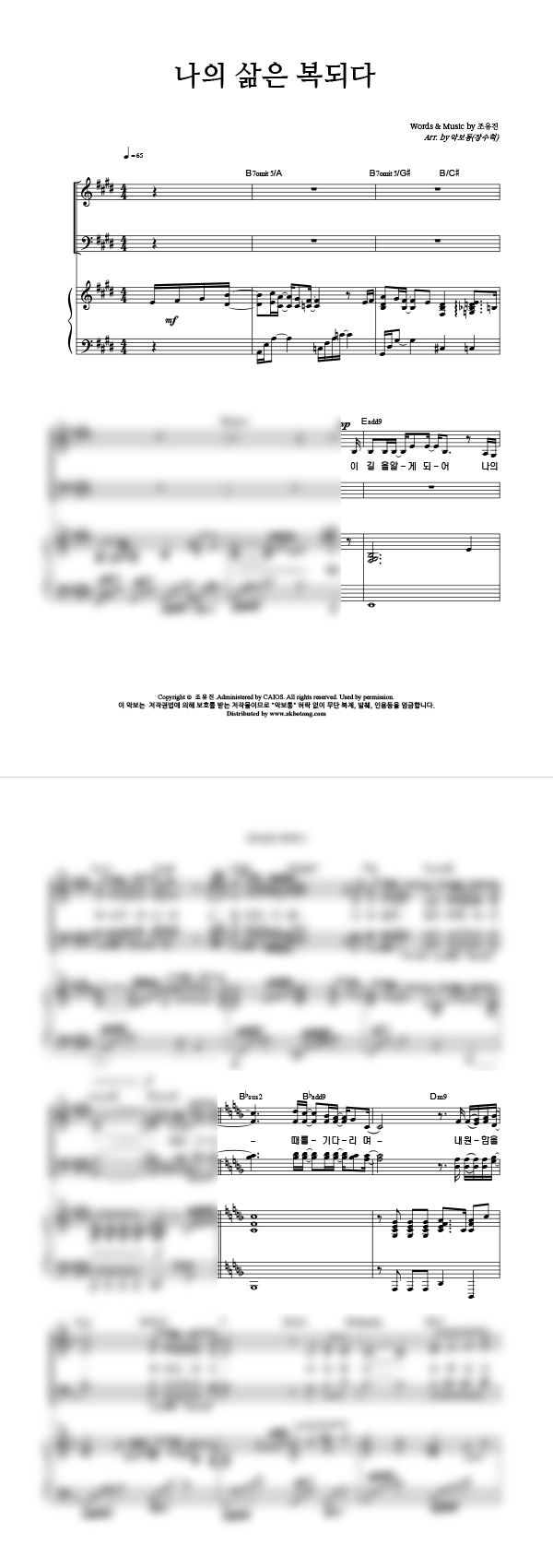| 나의 삶은 복되다 | 성가 3부 + 피아노 반주 |