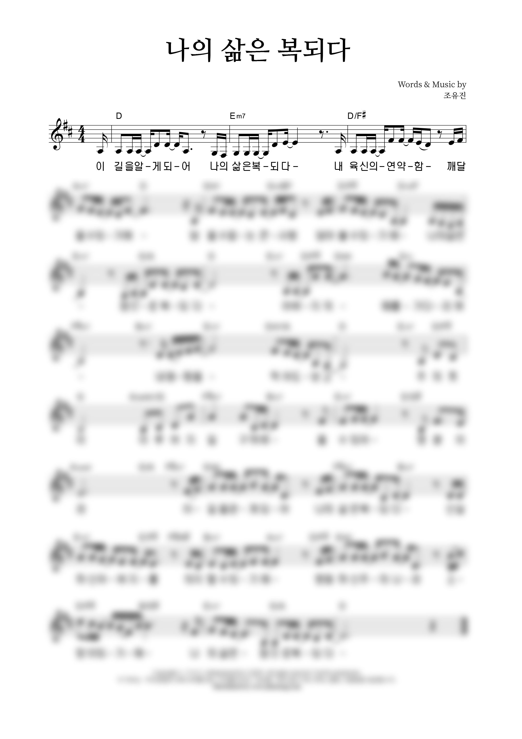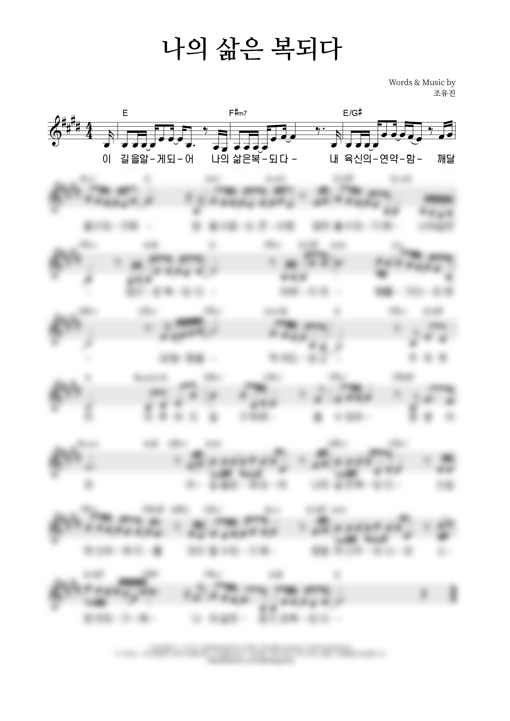 | 나의 삶은 복되다 | 성가 4부 + 피아노 반주 |