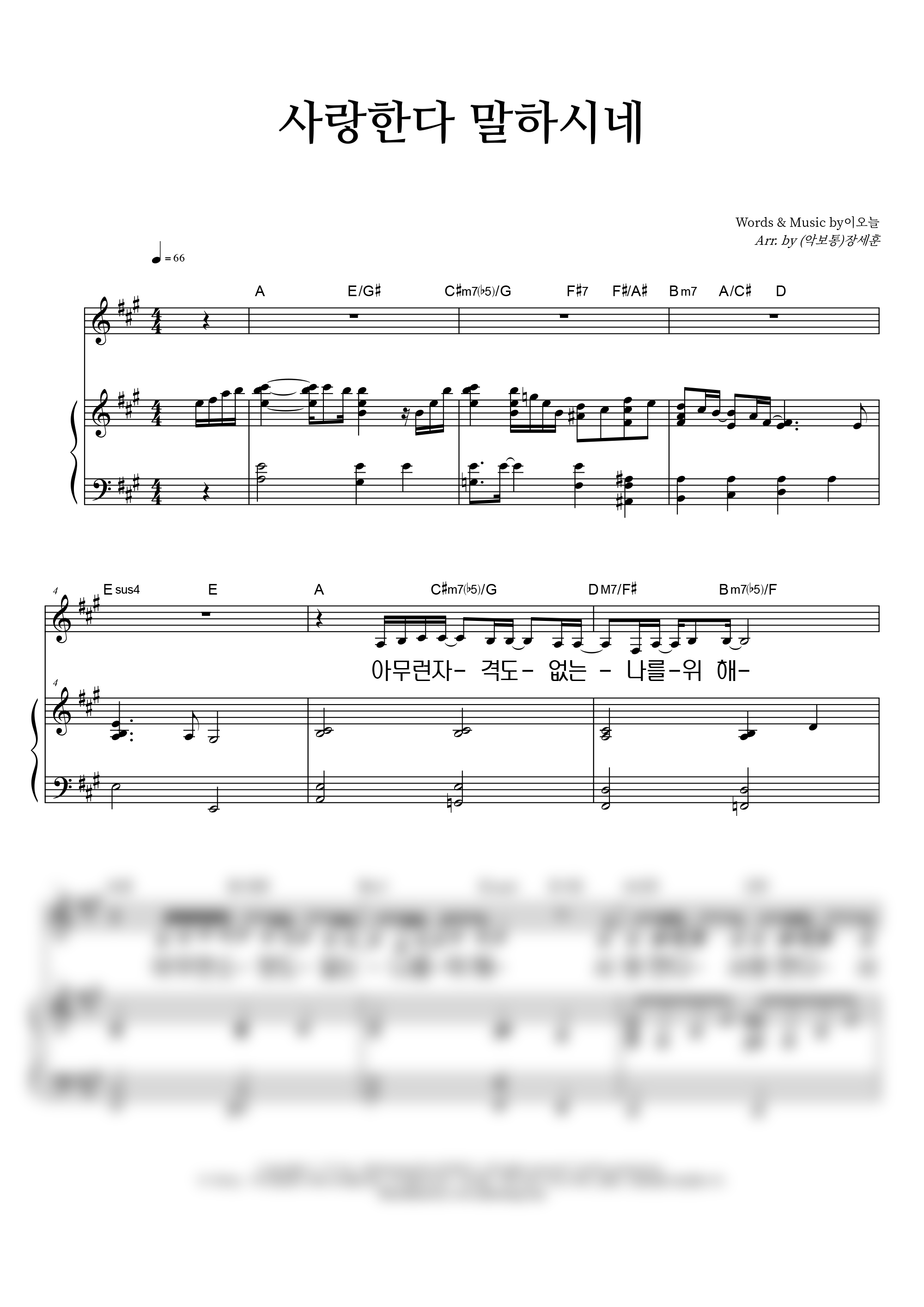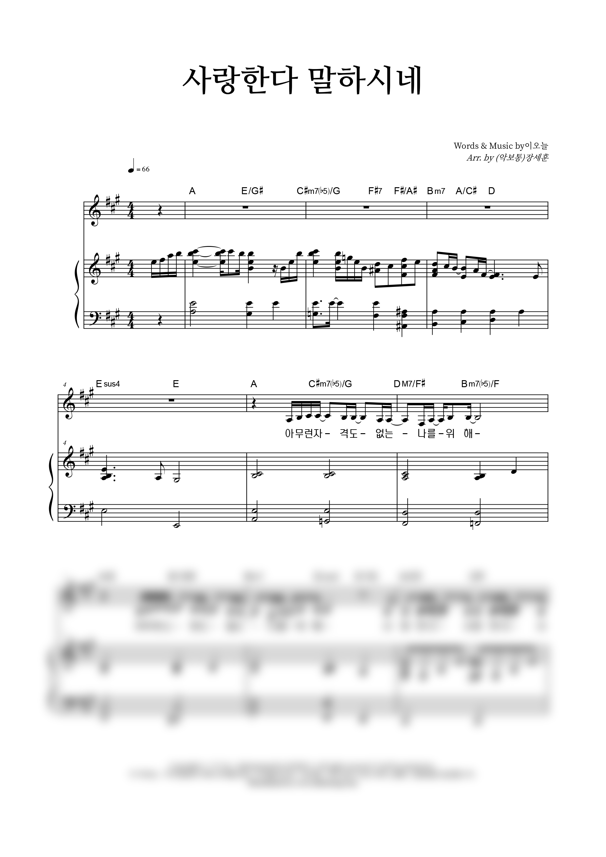 '사랑한다 말하시네' 의 다른 악보형식