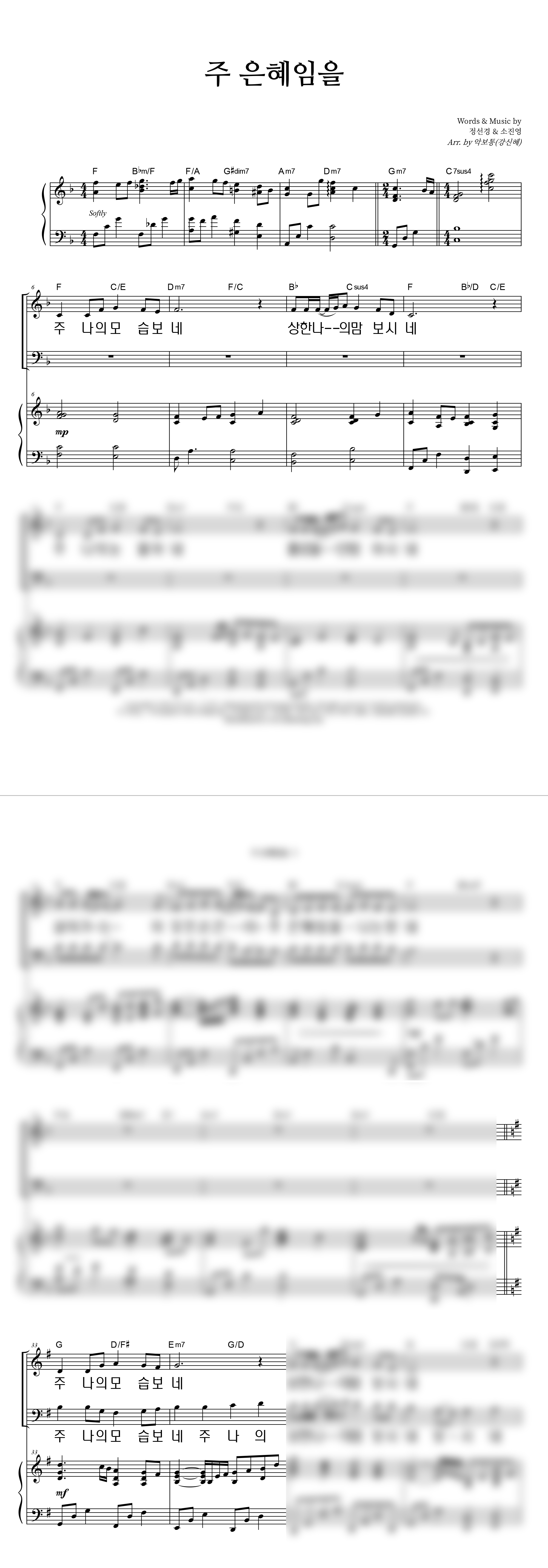 | 주 은혜임을 | 성가 2부 + 피아노 반주 |