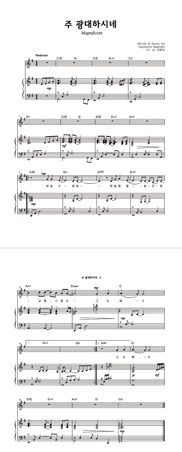 | 주 광대하시네 | 성가 3부 + 피아노 반주 |