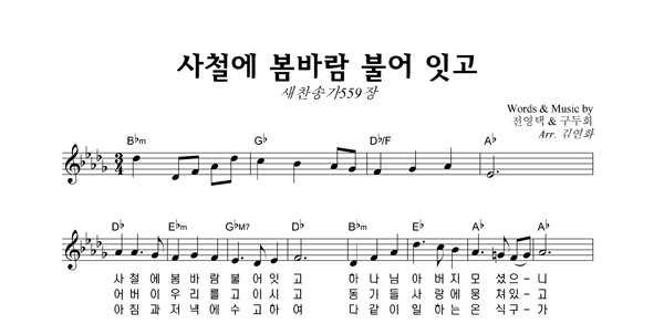 | 사철에 봄바람 불어 잇고 (찬송가 559장) | 성가 4부 + 피아노 반주 |