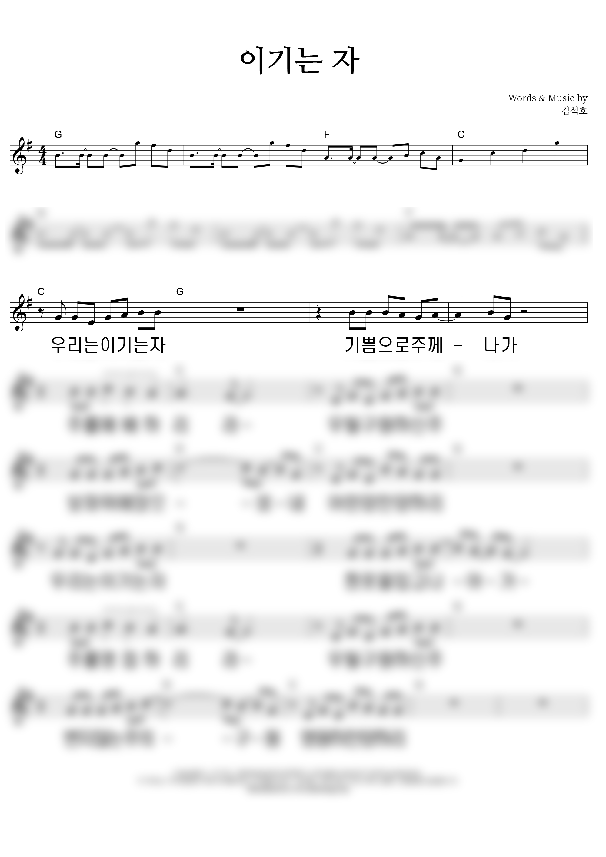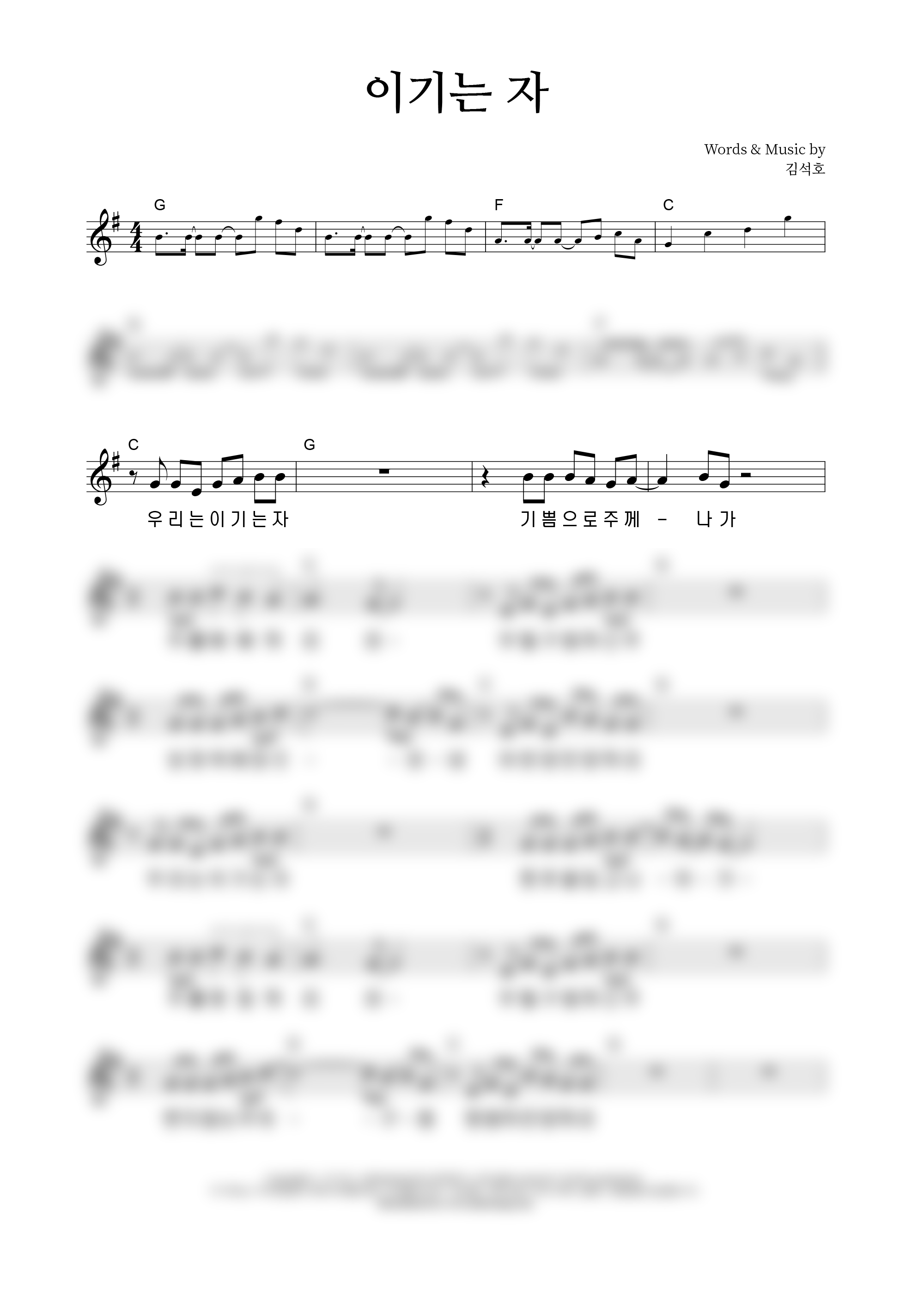 '이기는 자' 의 다른 악보