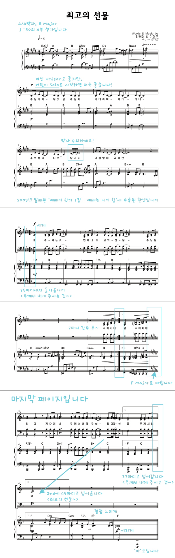 | 최고의 선물 | 성가 4부 + 피아노 반주 |