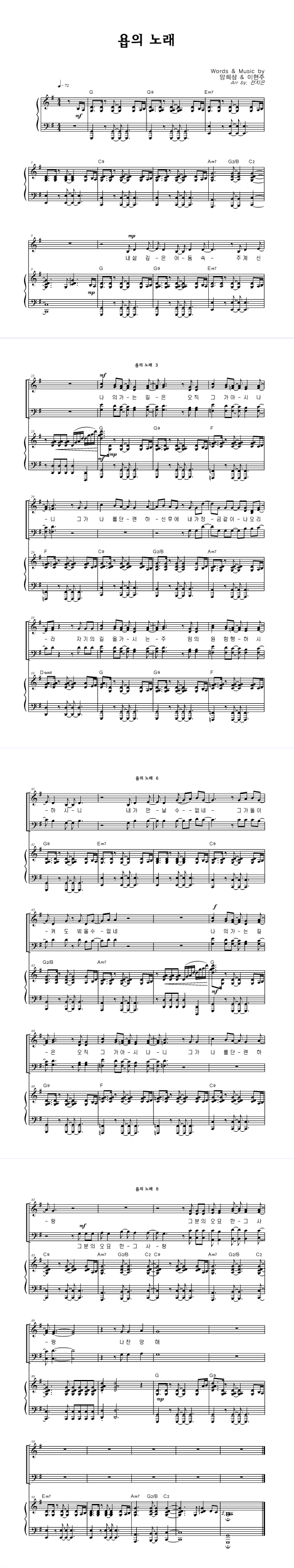 | 성가 2부 + 피아노 반주 |