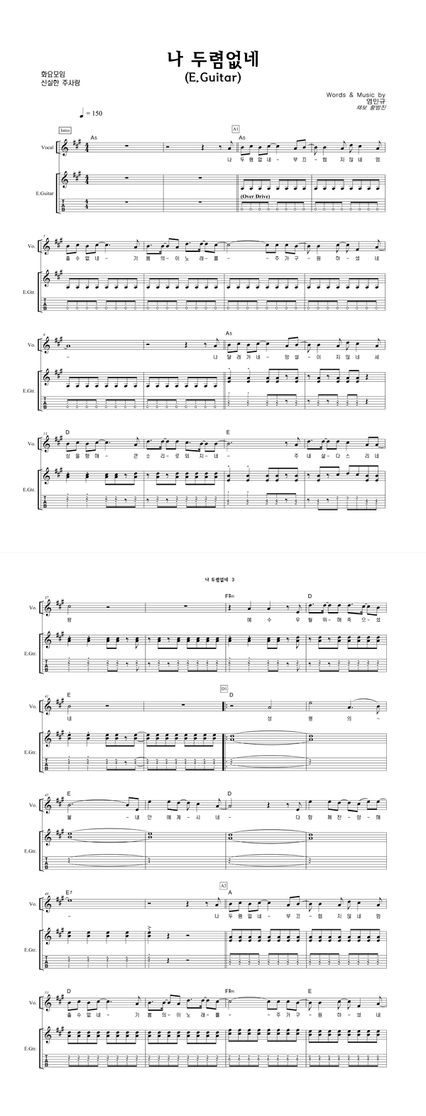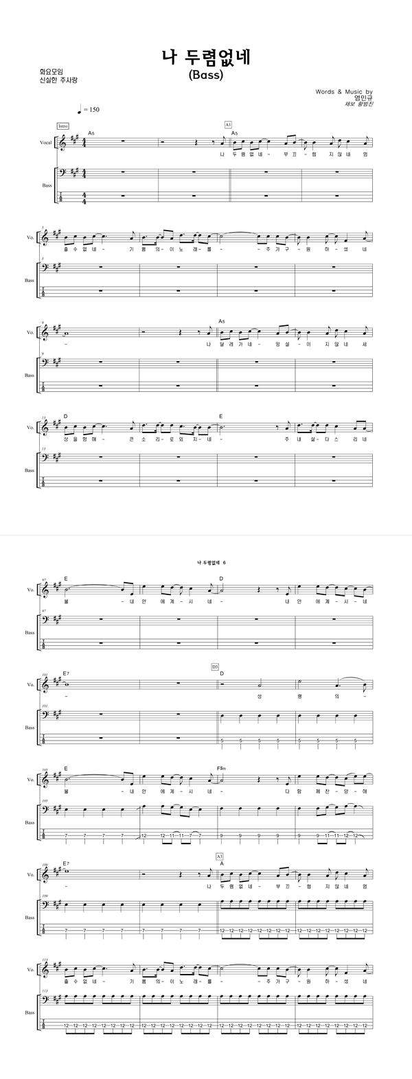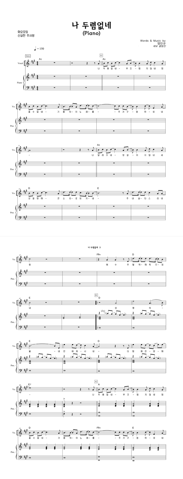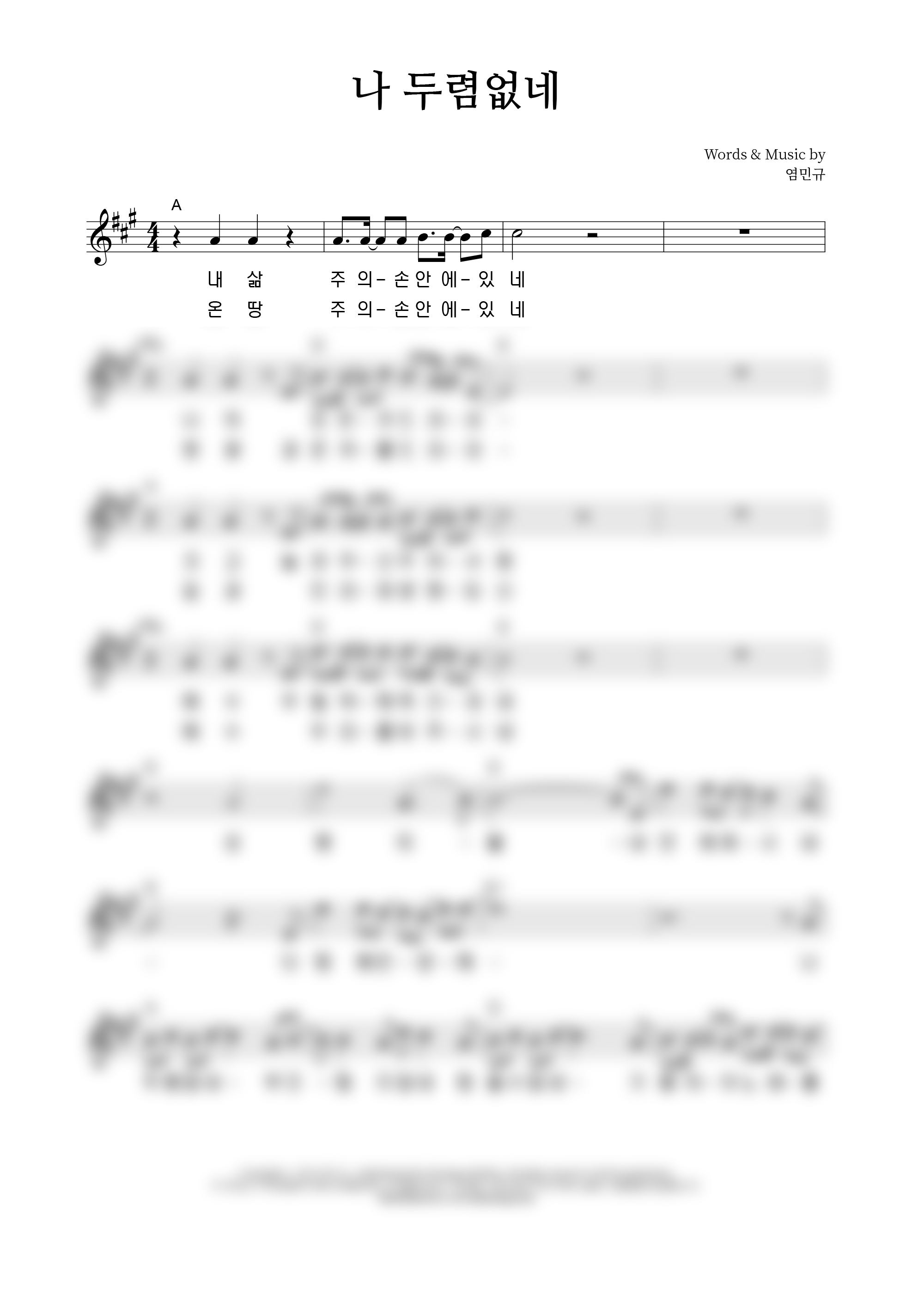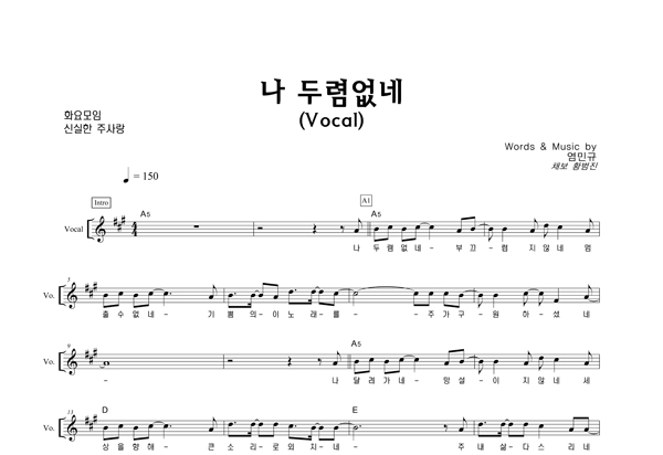 '나 두렴없네' 의 다른 악보형식