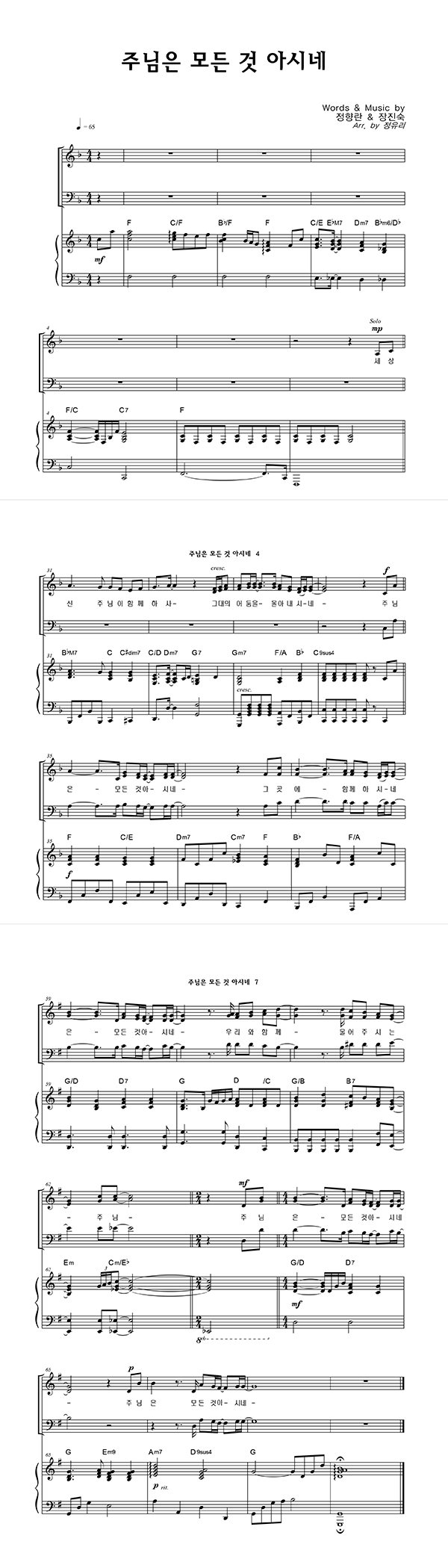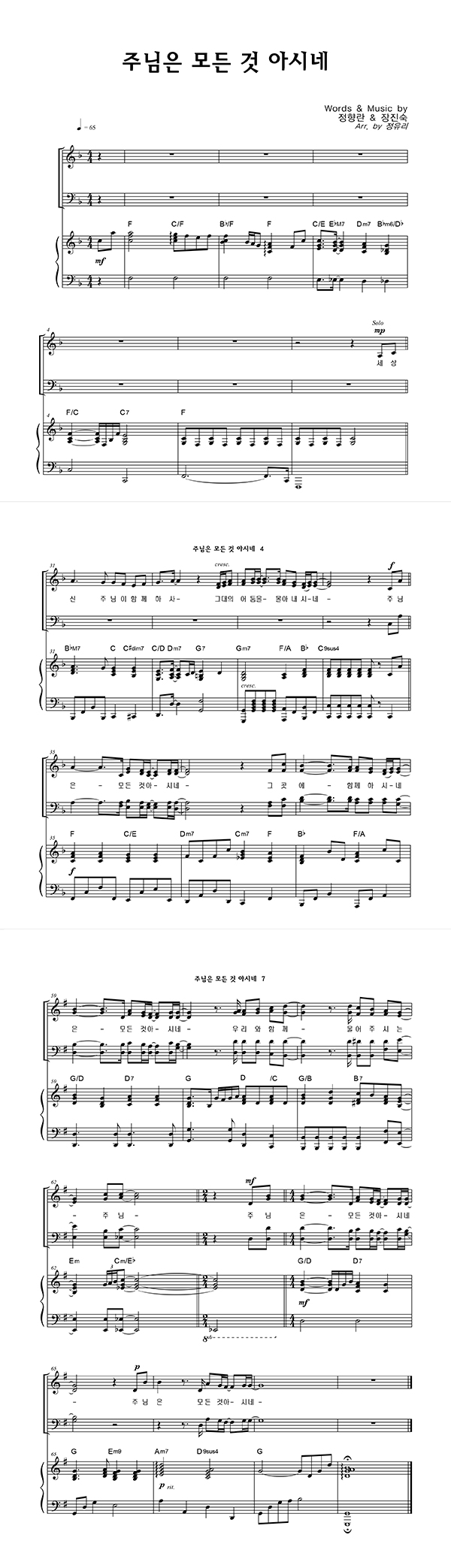 | 주님은 모든 것 아시네 | 성가 4부 + 피아노 반주 |