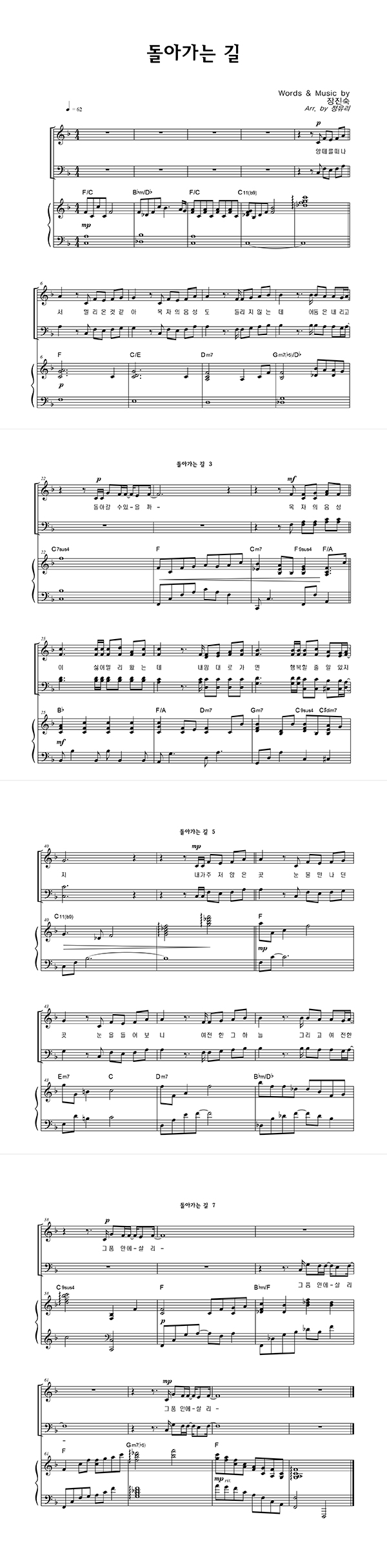 | 돌아가는 길 | 성가 3부 + 피아노 반주 |