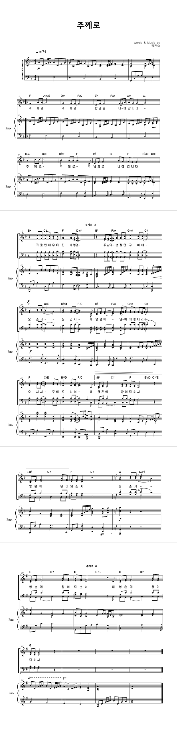 | 주께로 | 성가 4부 + 피아노 반주 |