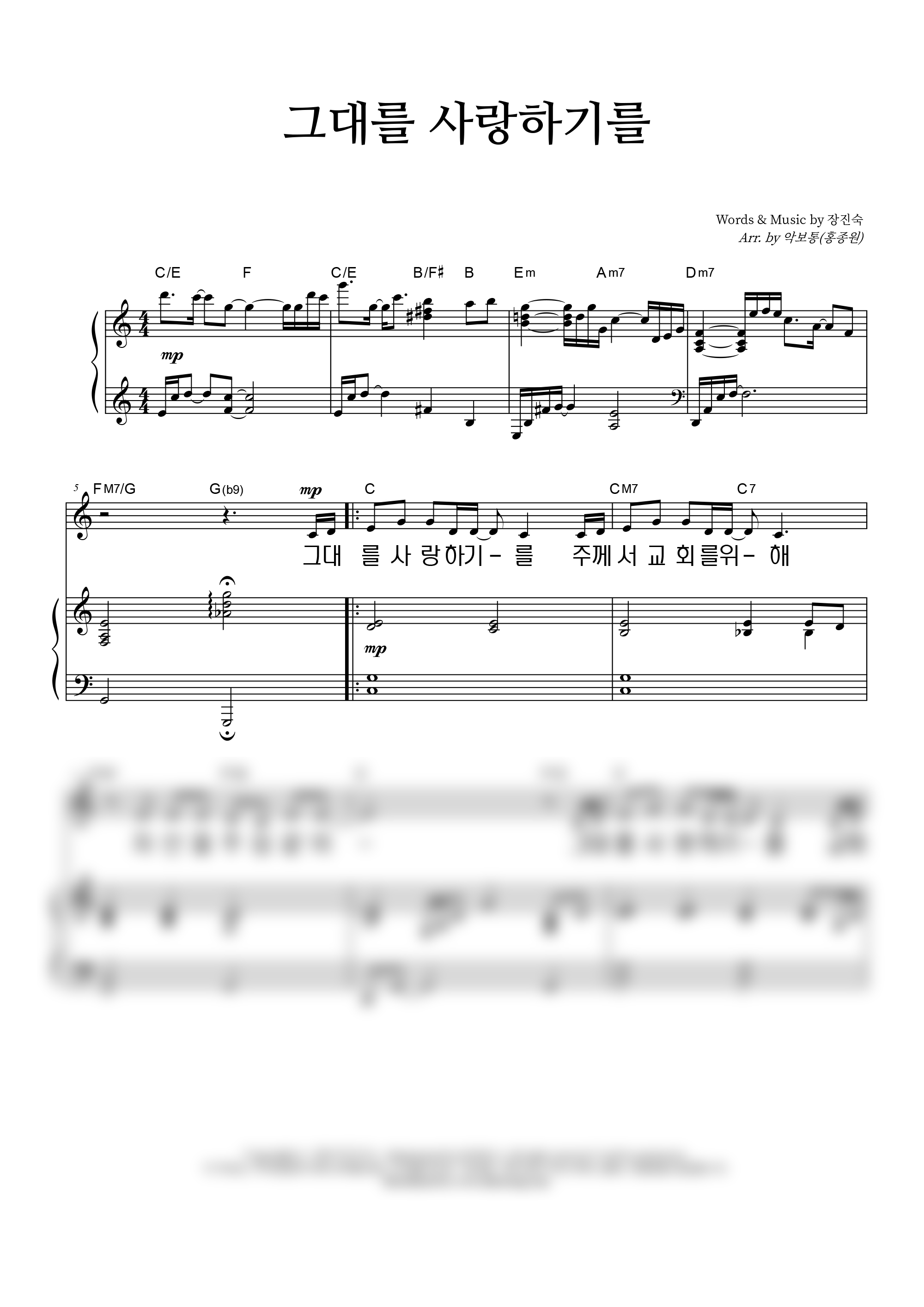 '그대를 사랑하기를' 의 다른 악보형식