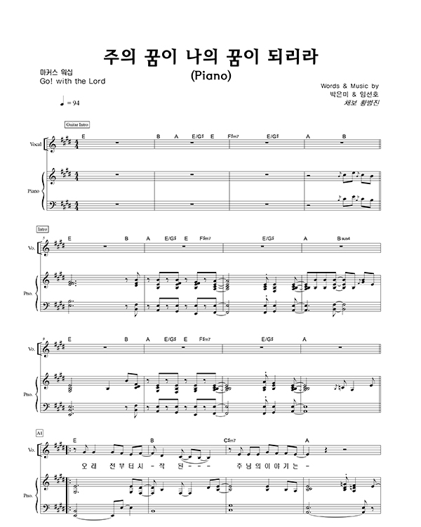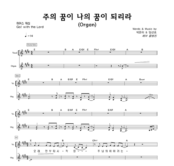 '주의 꿈이 나의 꿈이 되리라' 의 다른 악보형식