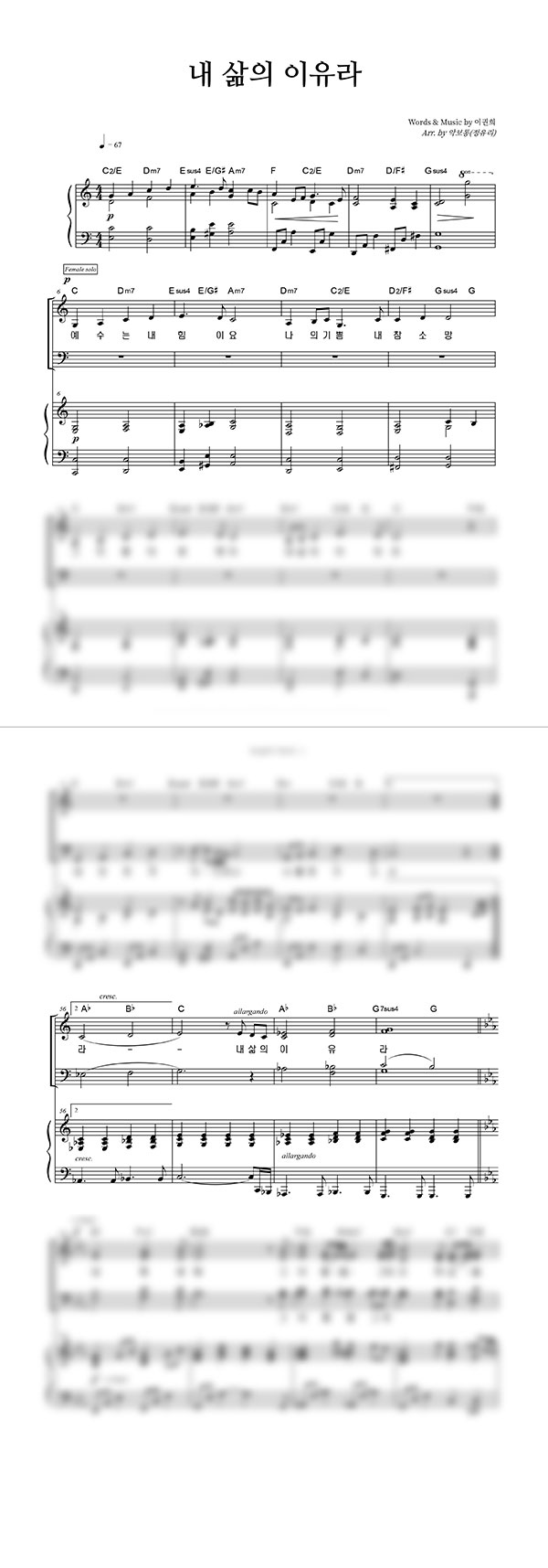 | 내 삶의 이유라 | 성가 3부 + 피아노 반주 |