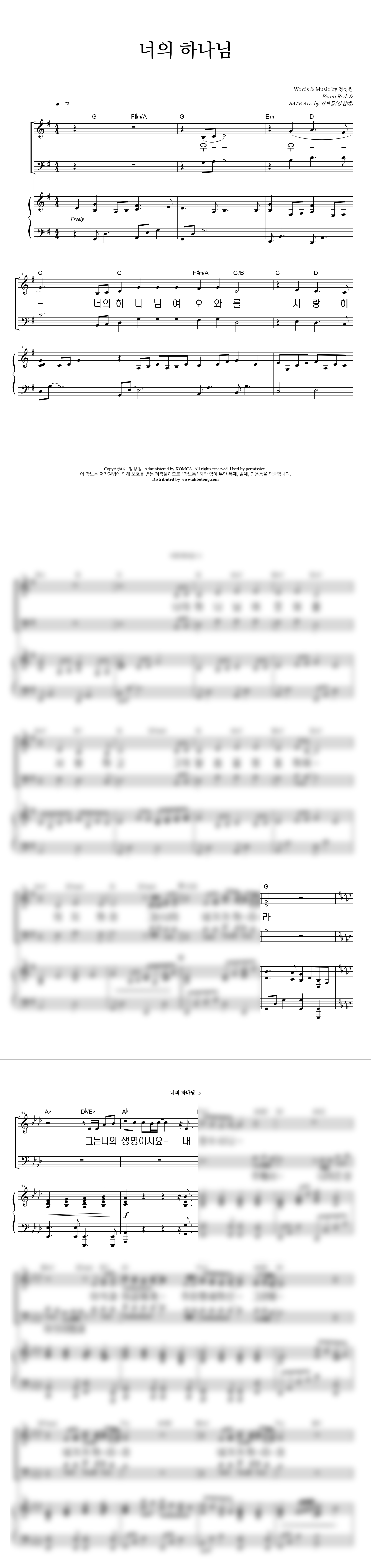 | 너의 하나님 | 성가 4부 + 피아노 반주 |