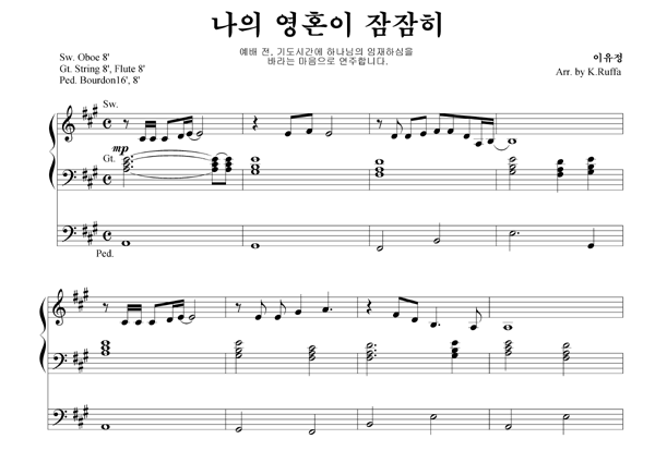 | 평강의 왕이요 | 성가 4부 + 피아노 반주 |