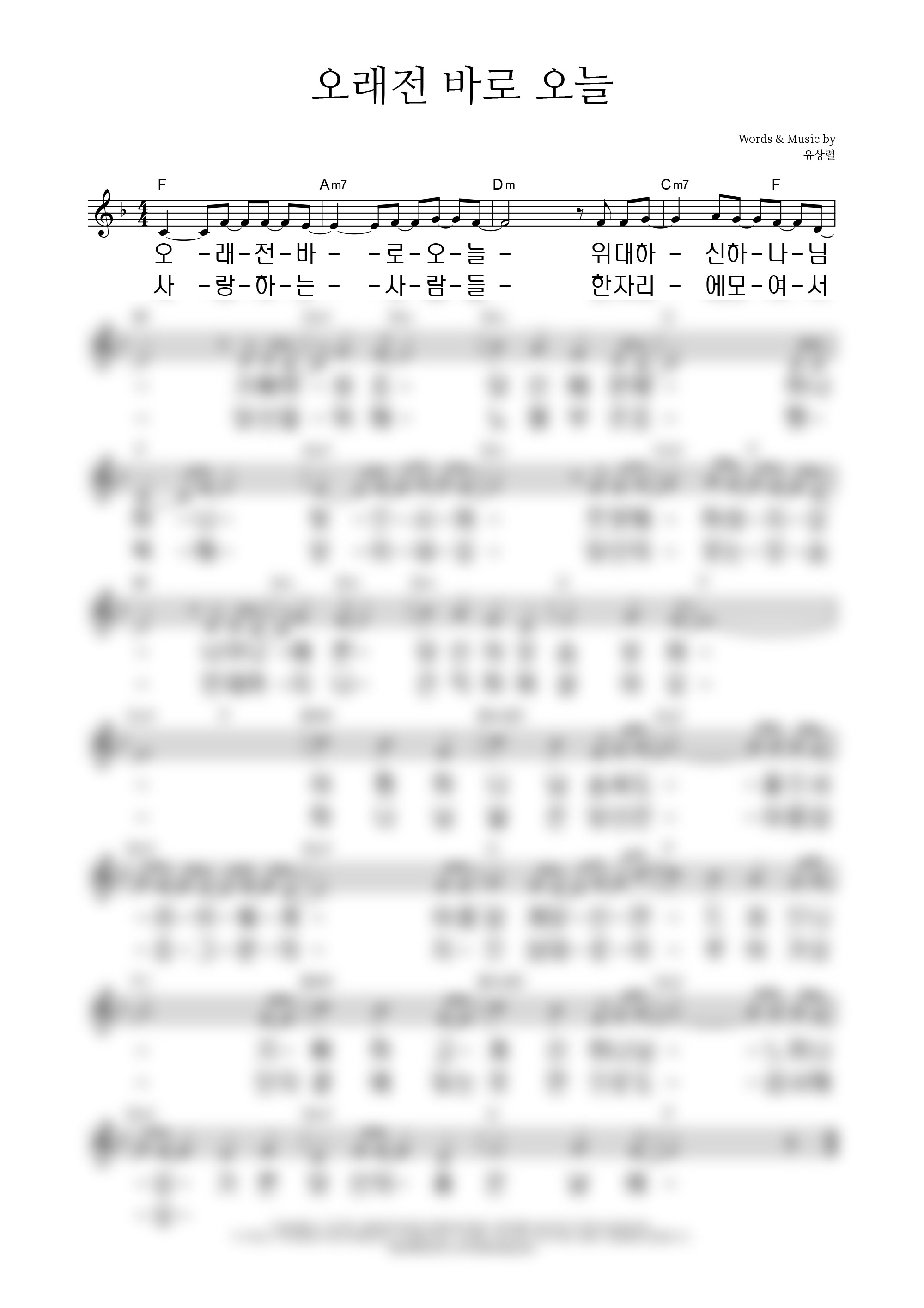 '나로부터 시작되리' 의 다른 악보형식
