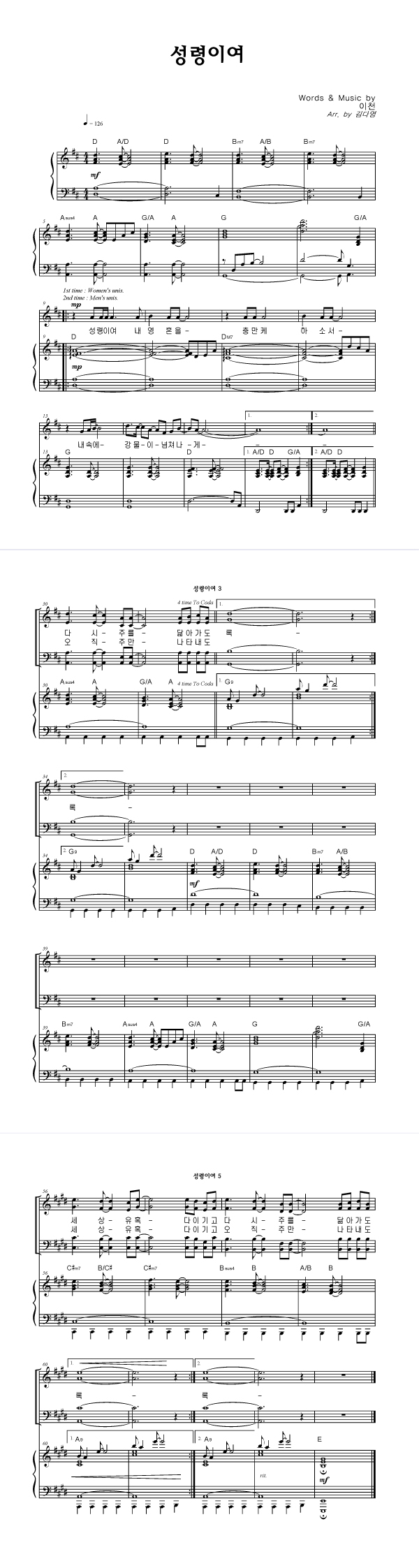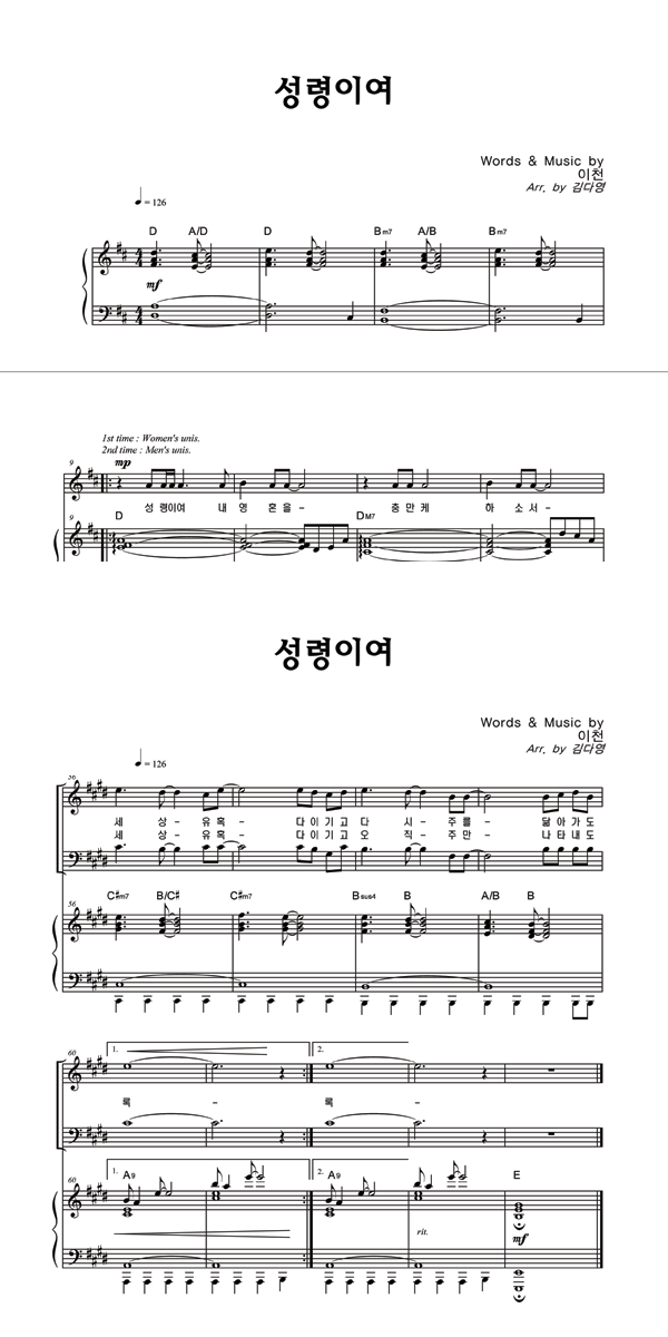 | 성령이여 | 성가 3부 + 피아노 반주 |