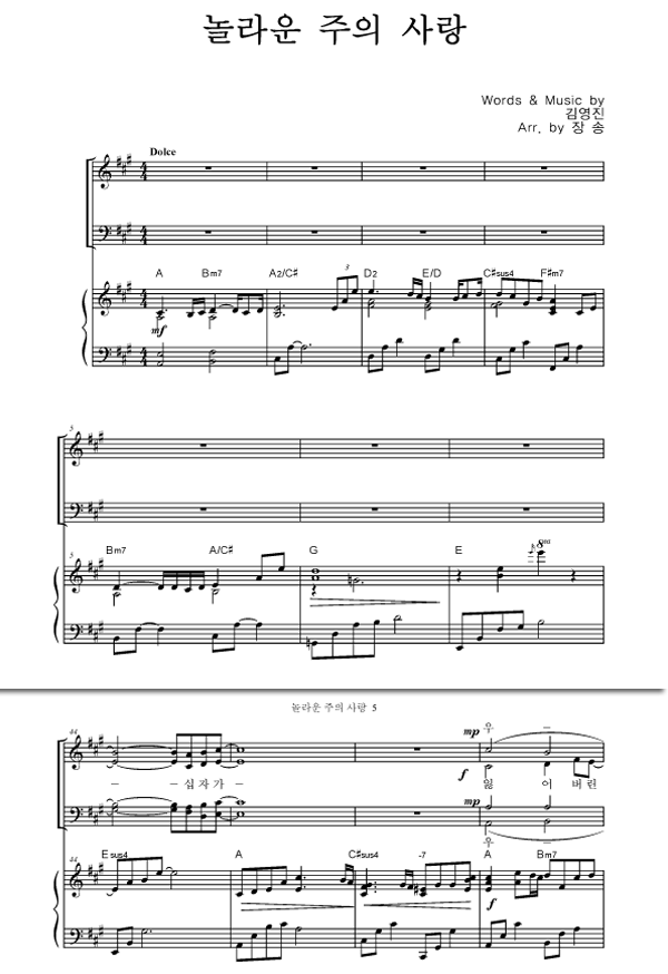 | 놀라운 주의 사랑 | 성가 4부 + 피아노 반주 |