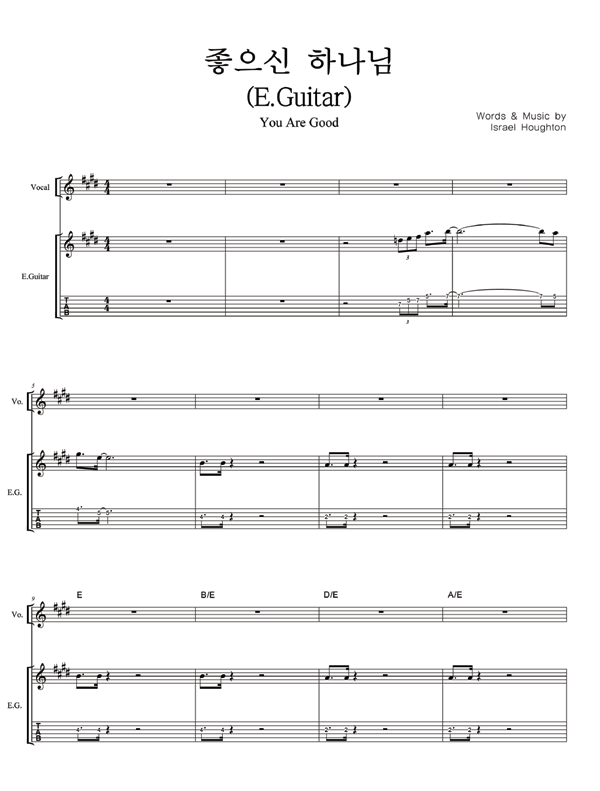 | 좋으신 하나님 | 성가 2부 + 피아노 반주 |