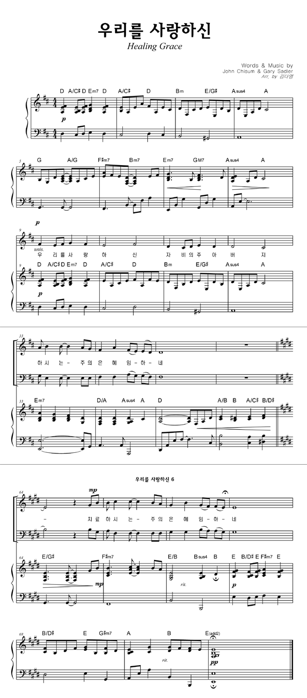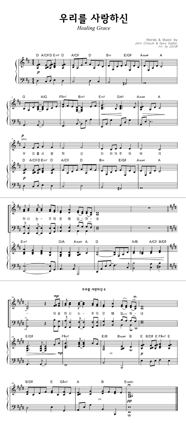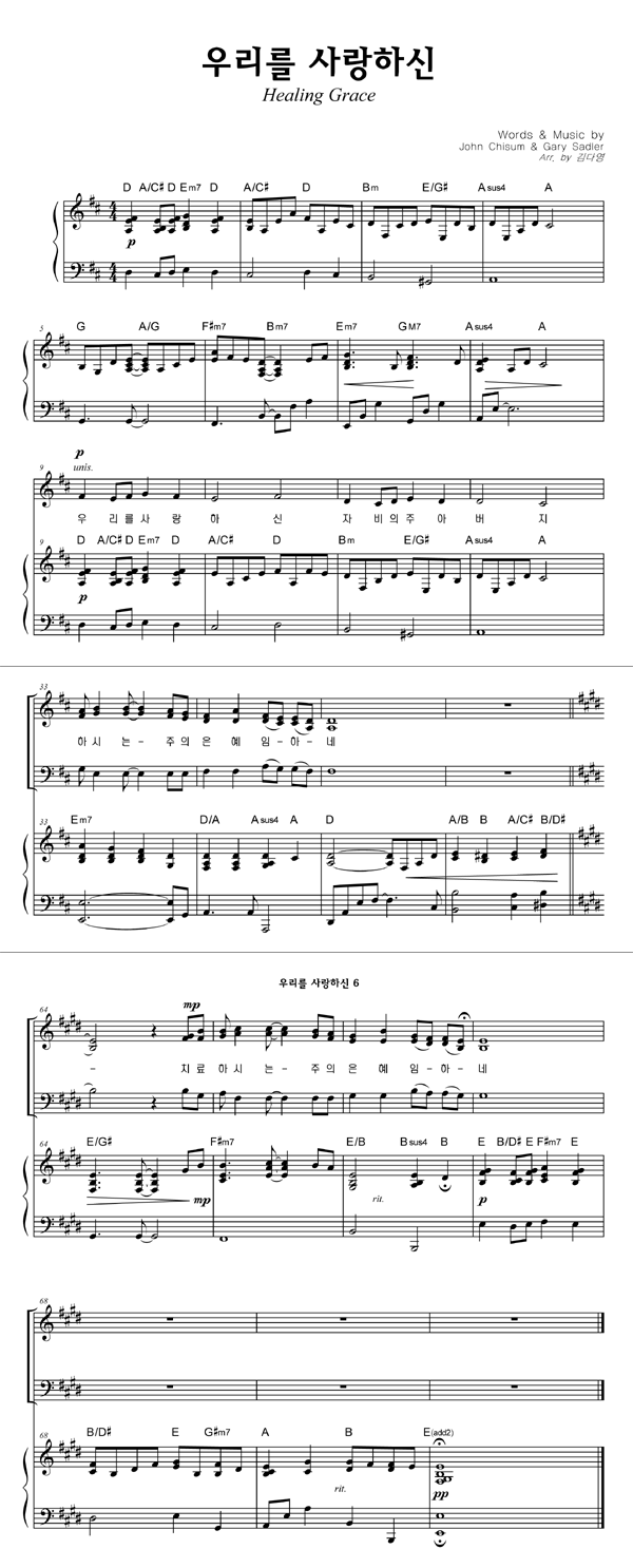| 우리를 사랑하신 | 성가 3부 + 피아노 반주 |