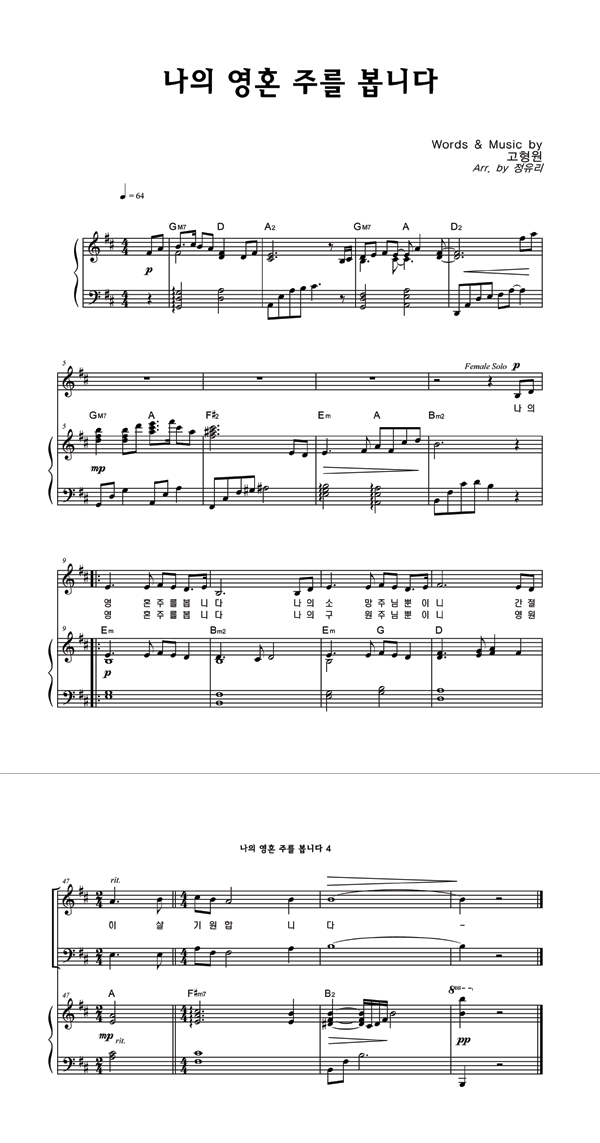 | 나의 영혼 주를 봅니다 | 성가 4부 + 피아노 반주 |