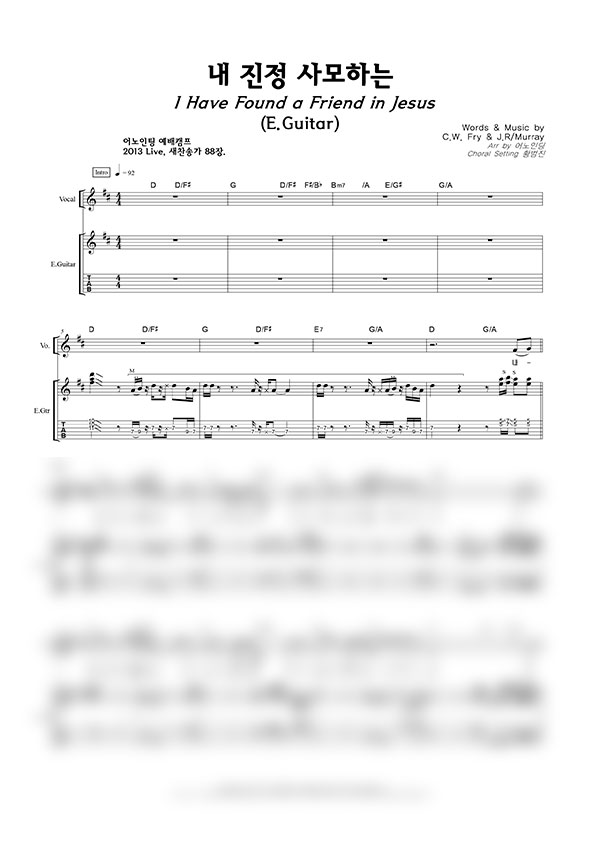 '내 진정 사모하는' 의 다른 악보형식