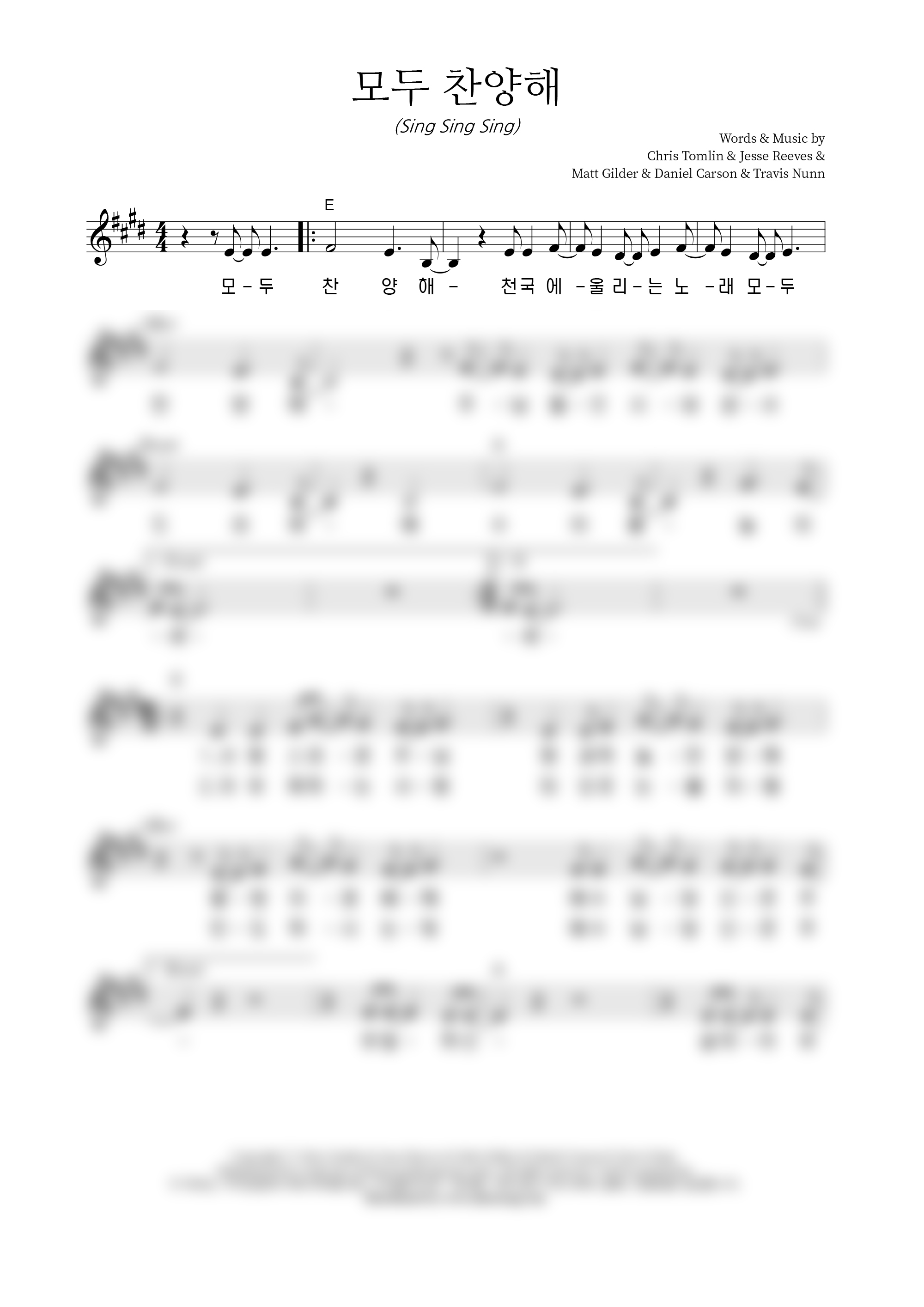 | 모두 찬양해 | 성가 4부 + 피아노 반주 |