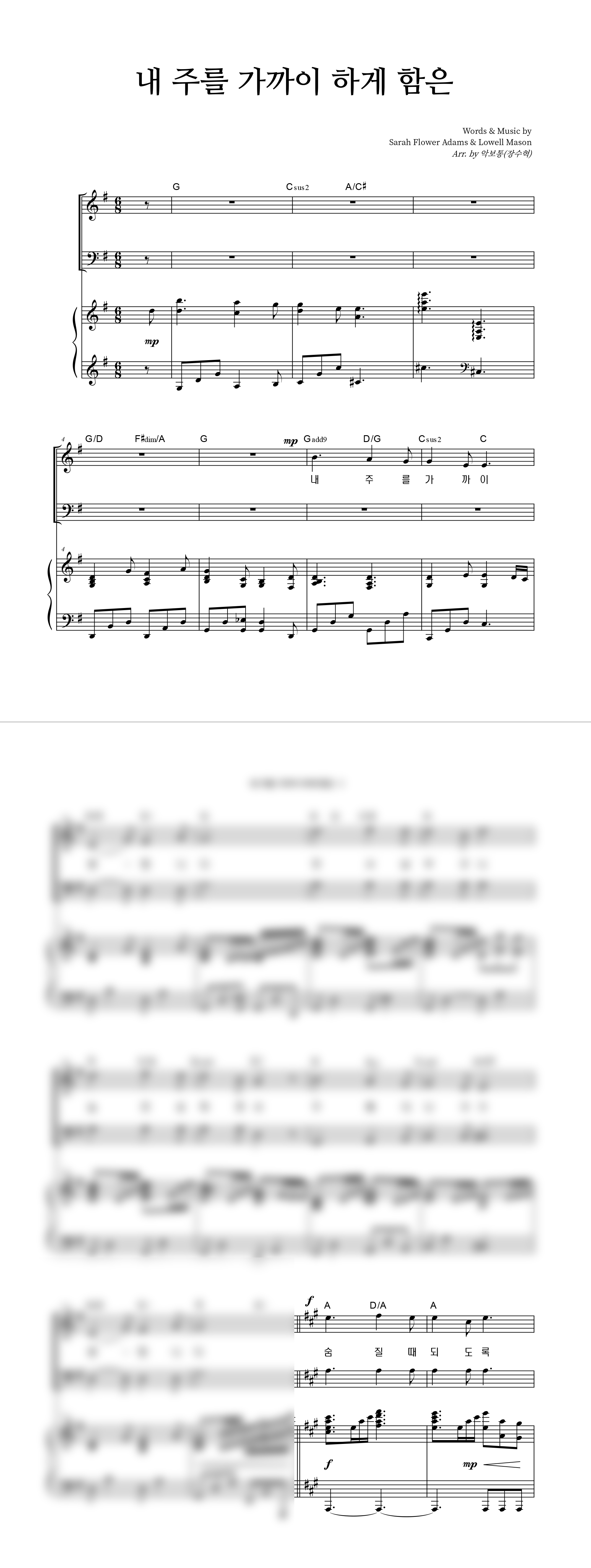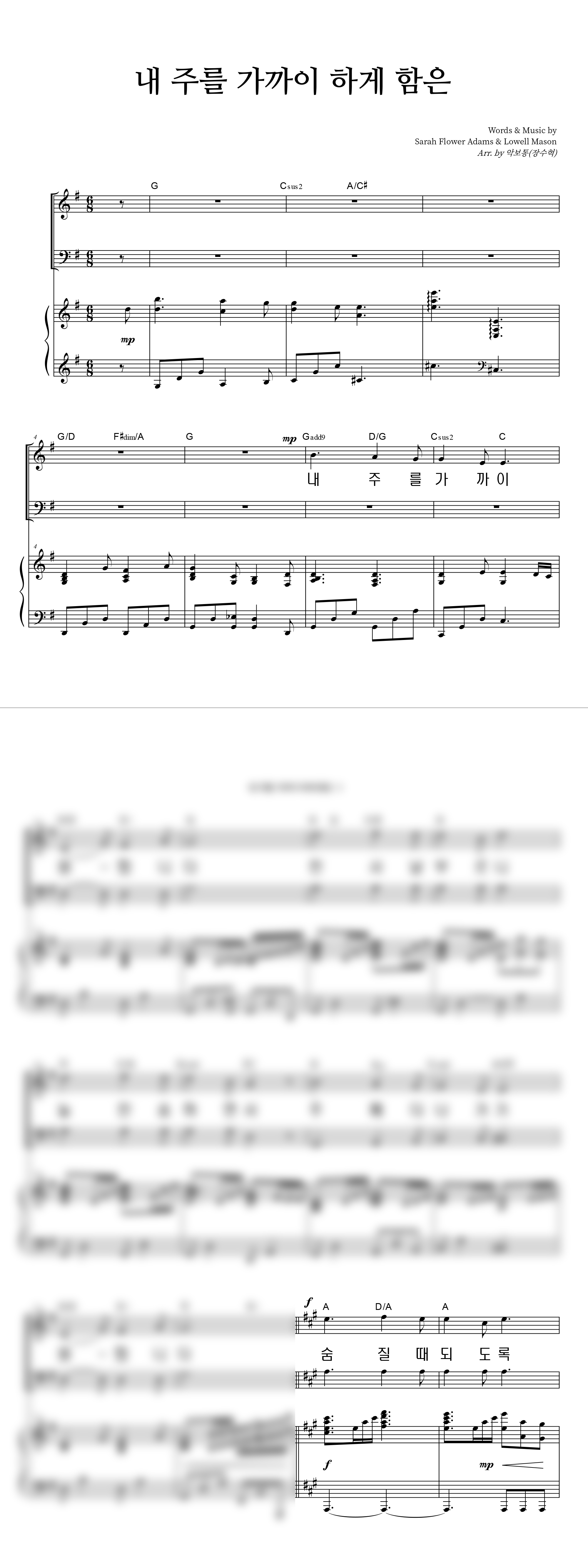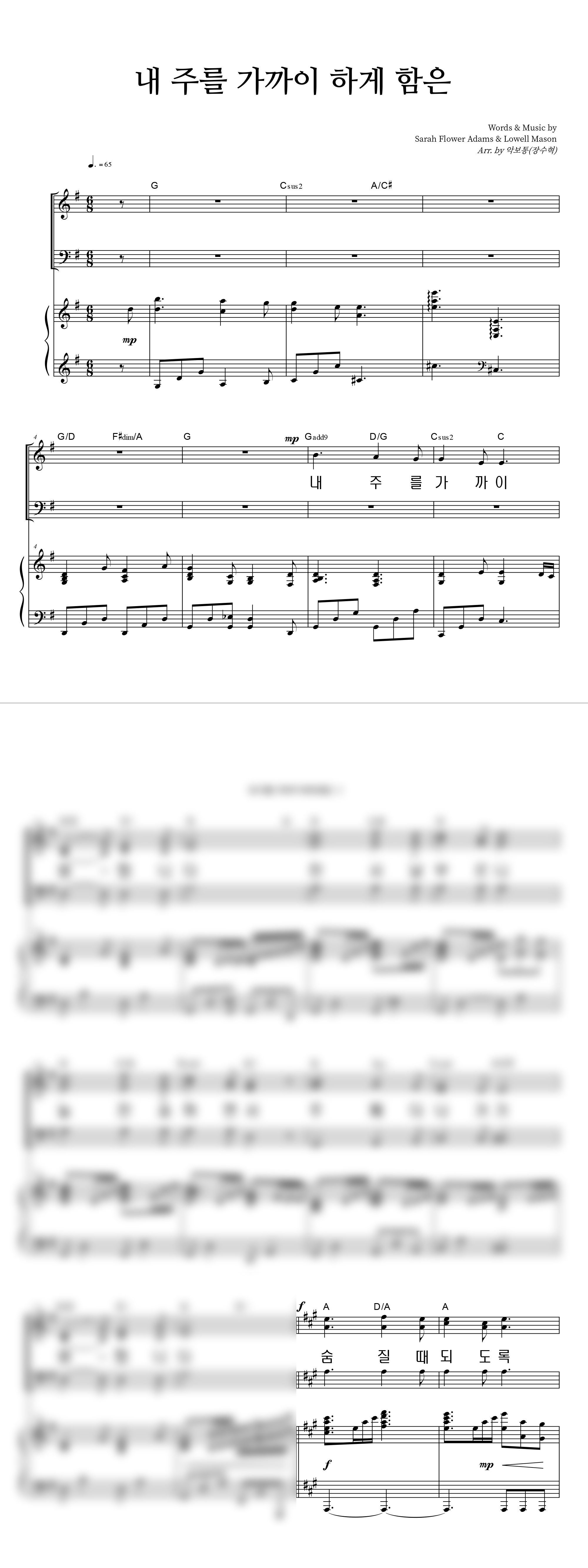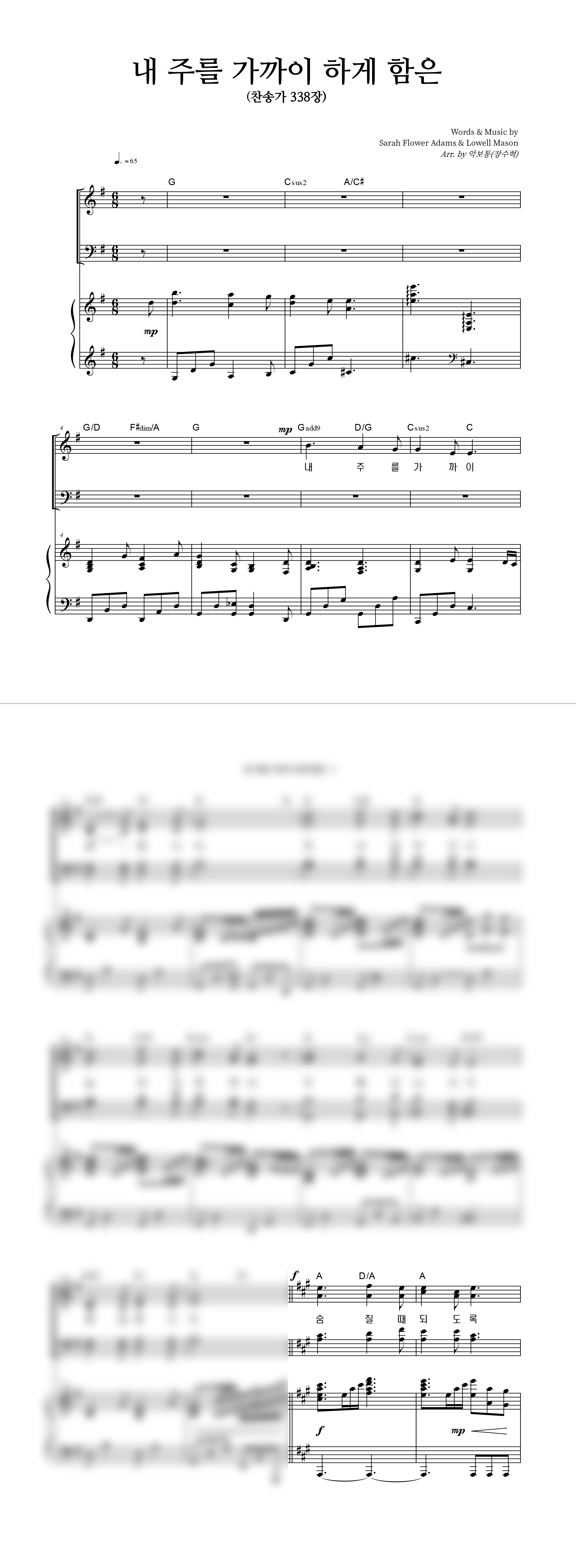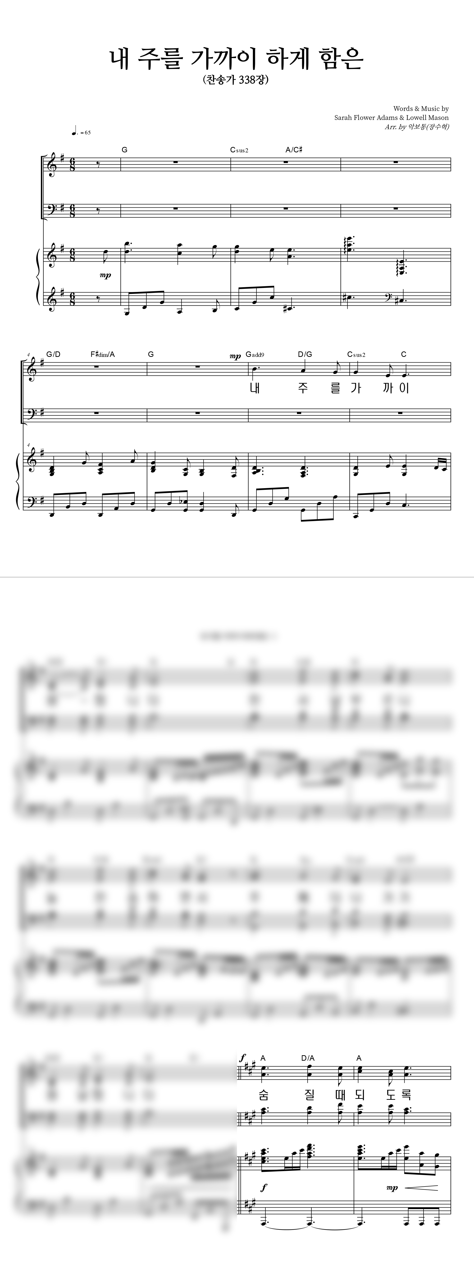 | 내 주를 가까이 하게 함은 (찬송가 338장) 큰글씨 | 성가 2부 + 피아노 반주 |