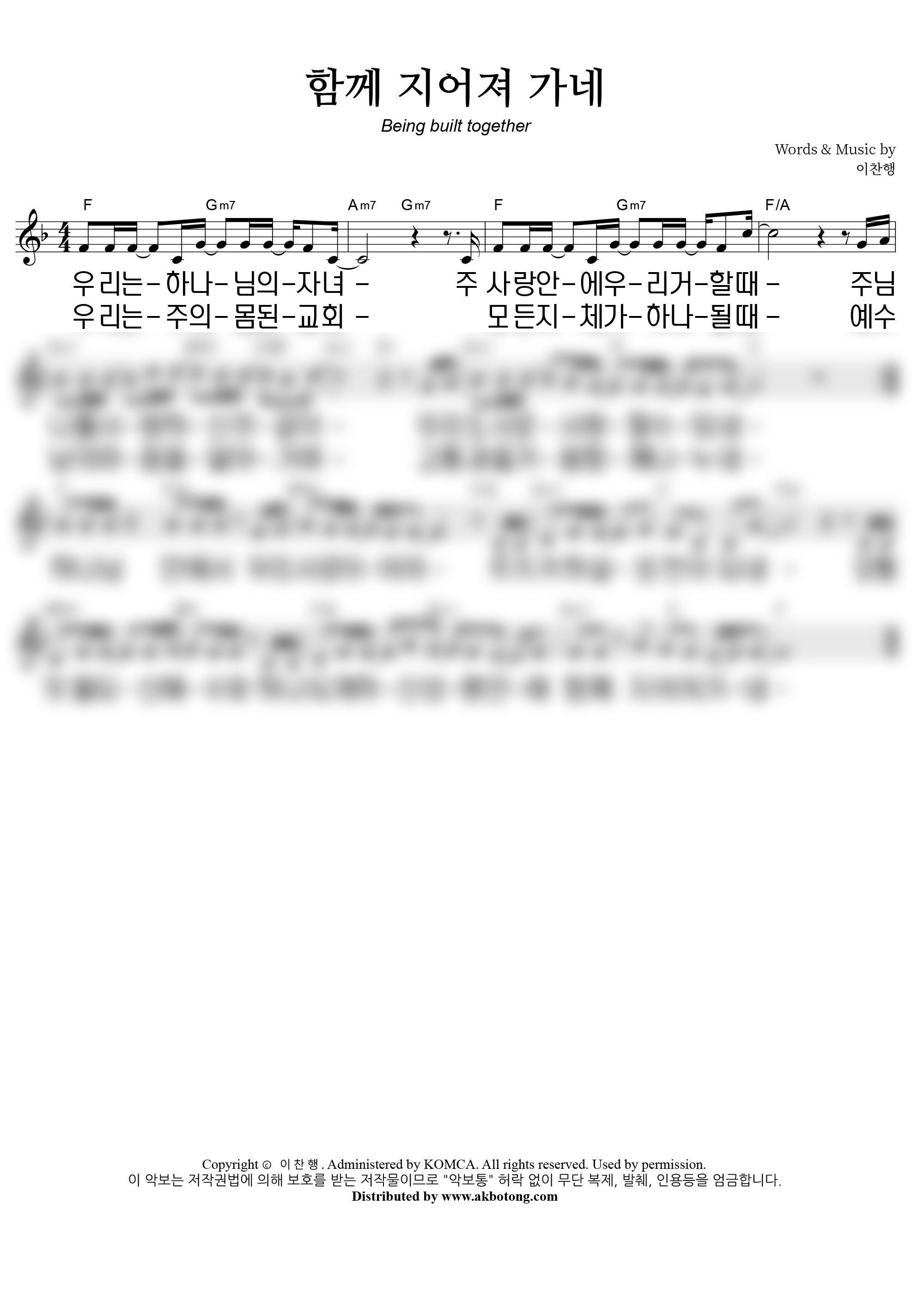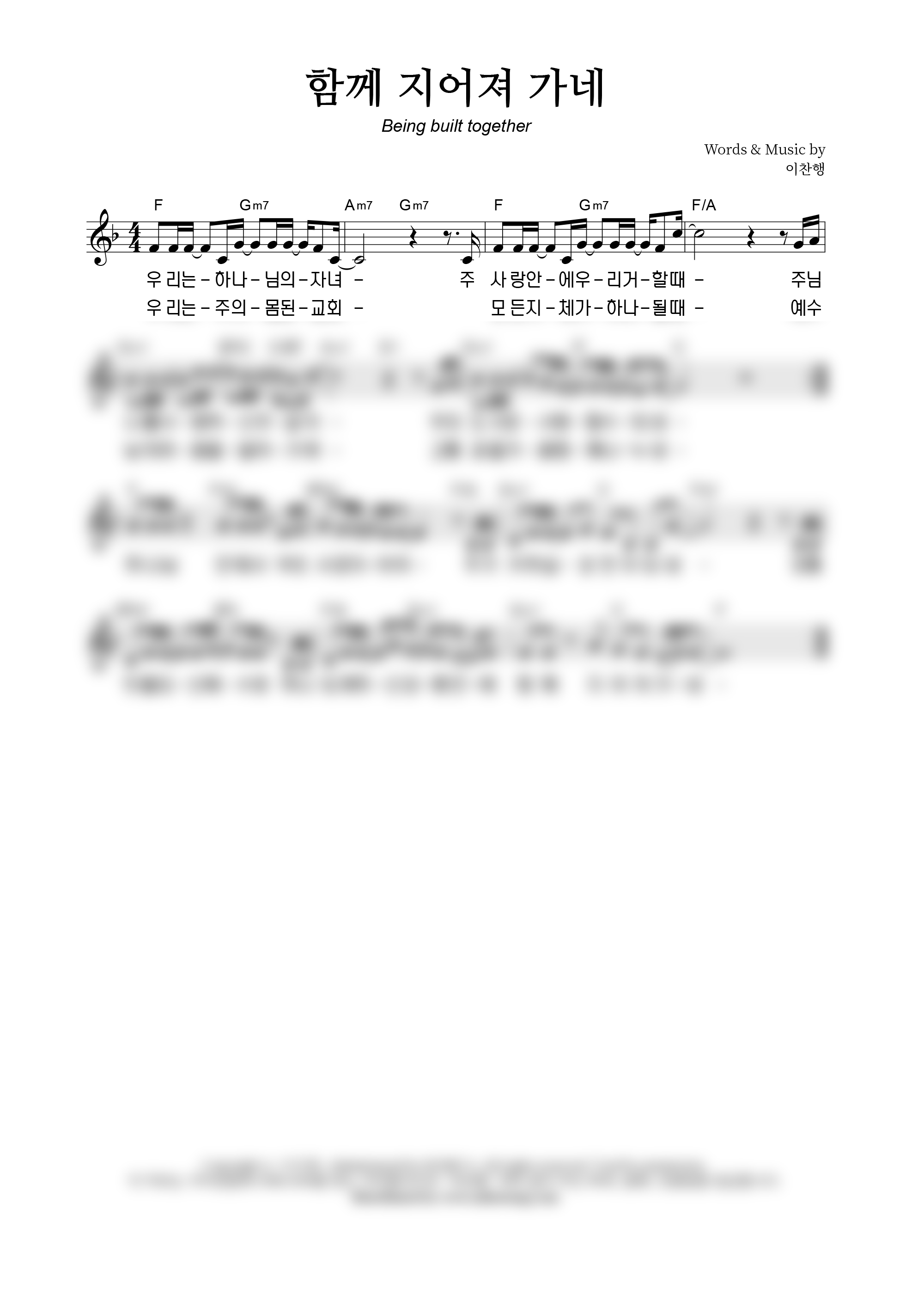 | 함께 지어져 가네 Being Built Together | 성가 3부 + 피아노 반주 |