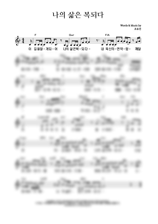 | 나의 삶은 복되다 | 성가 4부 + 피아노 반주 |