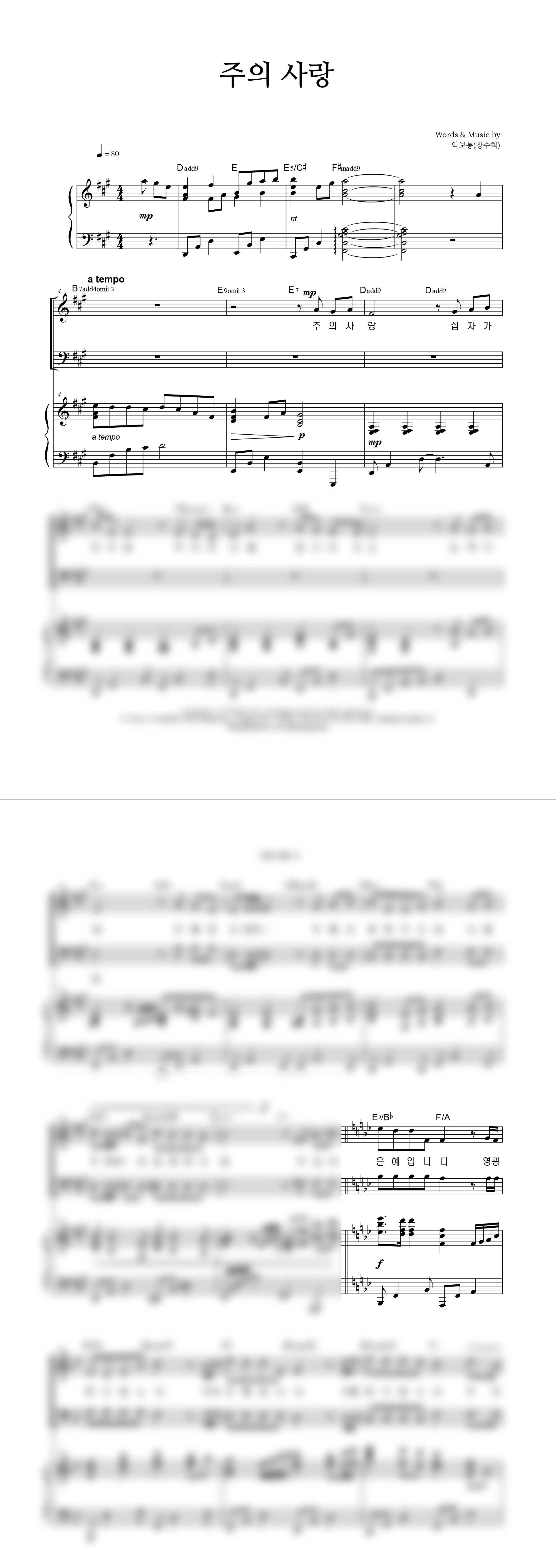 '주의 사랑' 의 다른 악보형식