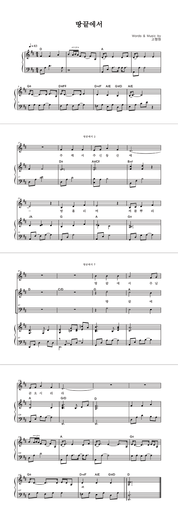 | 땅 끝에서 | 성가 2부 + 피아노 반주 |