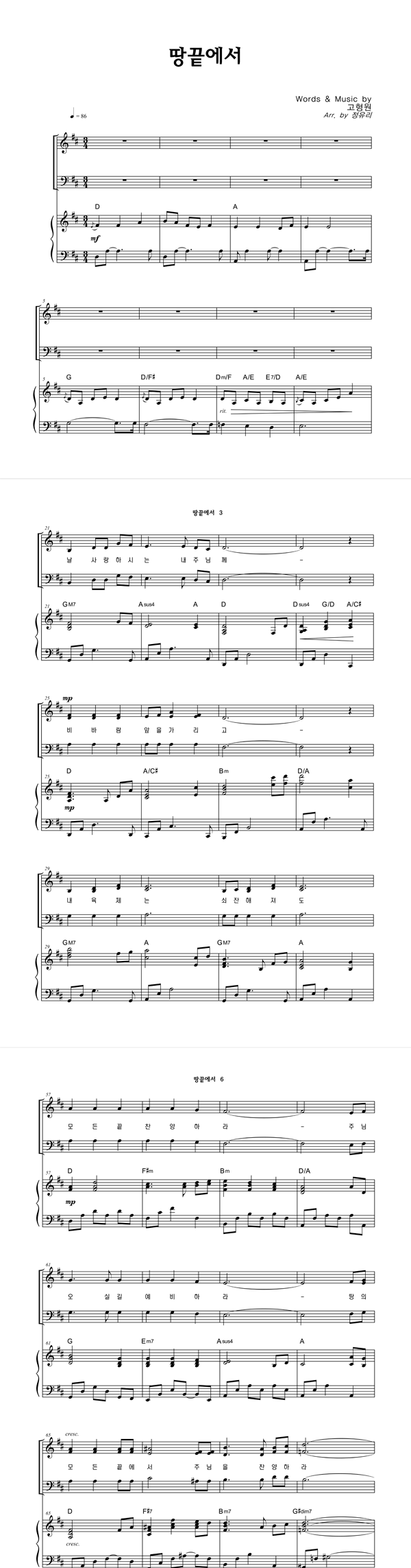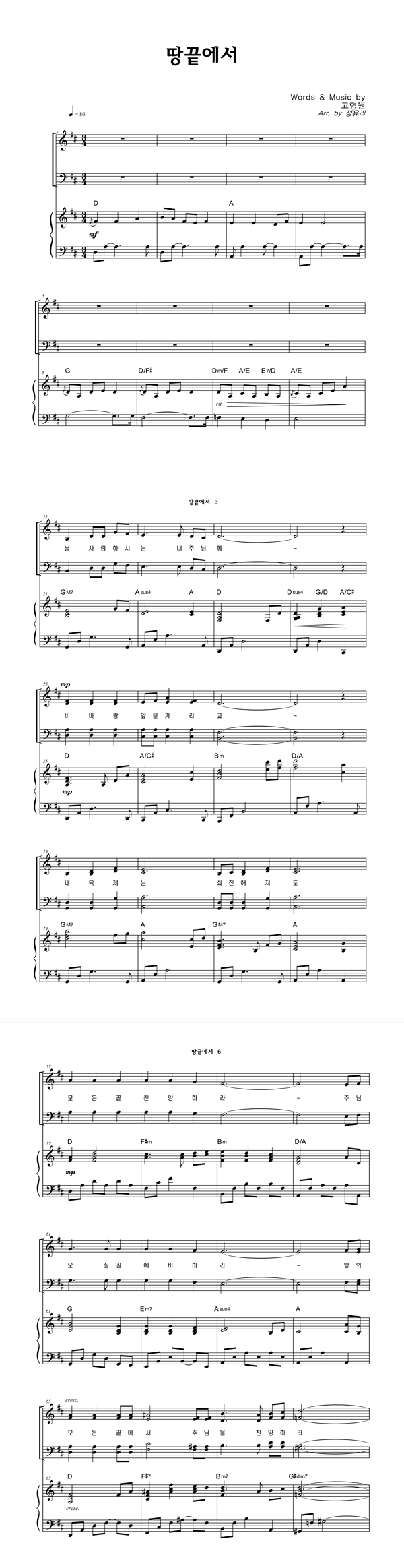 | 땅 끝에서 | 성가 3부 + 피아노 반주 |