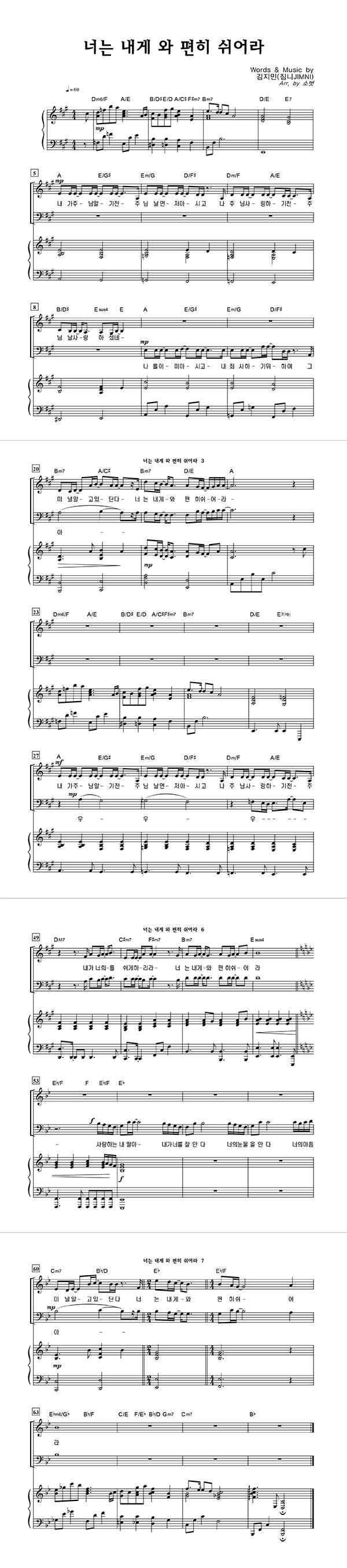 | 너는 내게 와 편히 쉬어라 | 성가 2부 + 피아노 반주 |