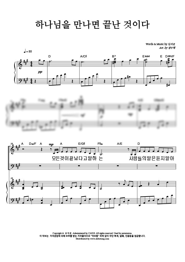 '하나님을 만나면 끝난 것이다' 의 다른 악보형식