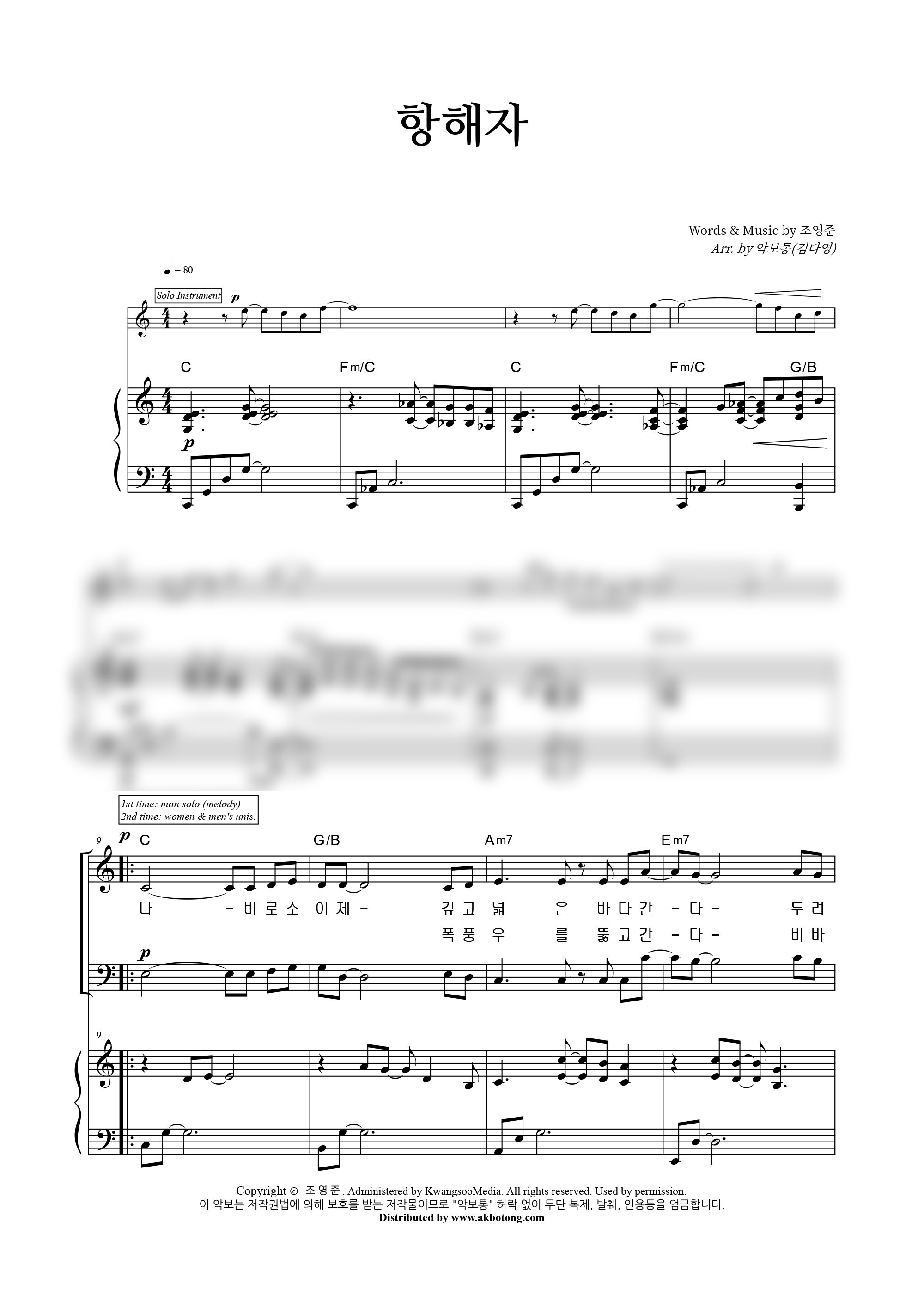 | 항해자 | 성가 3부 + 피아노 반주 |