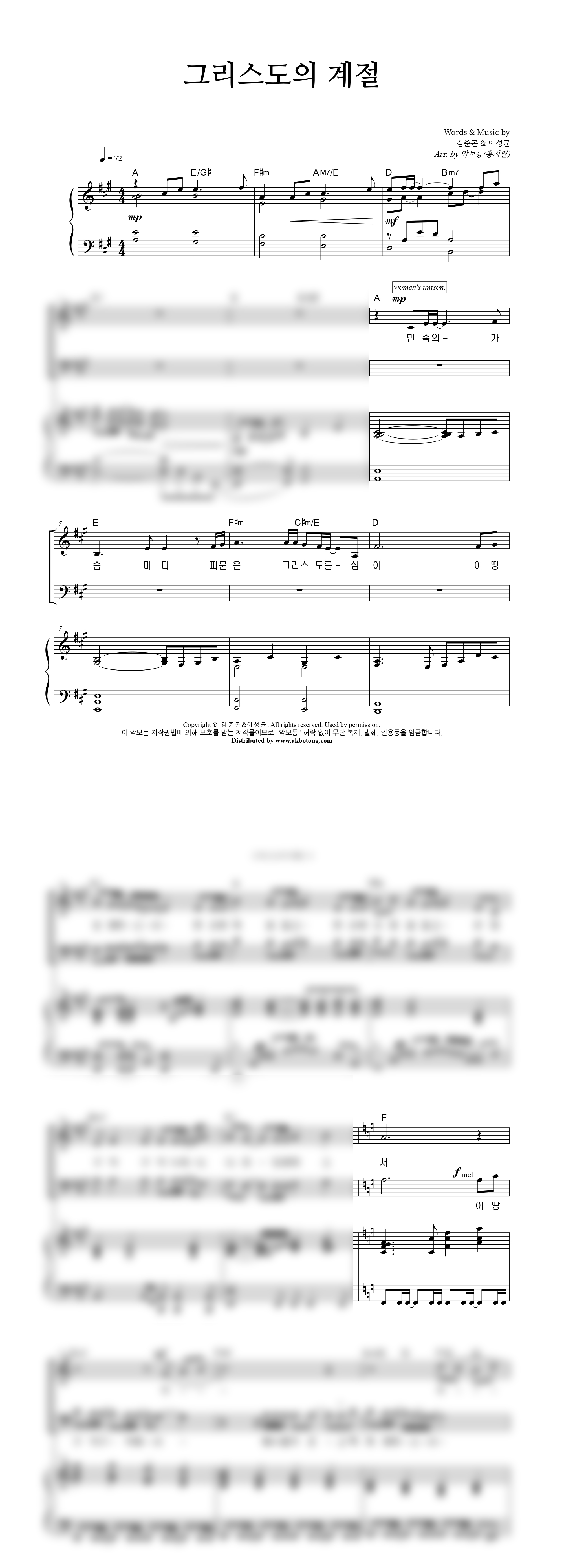| 성가 2부 + 피아노 반주 |