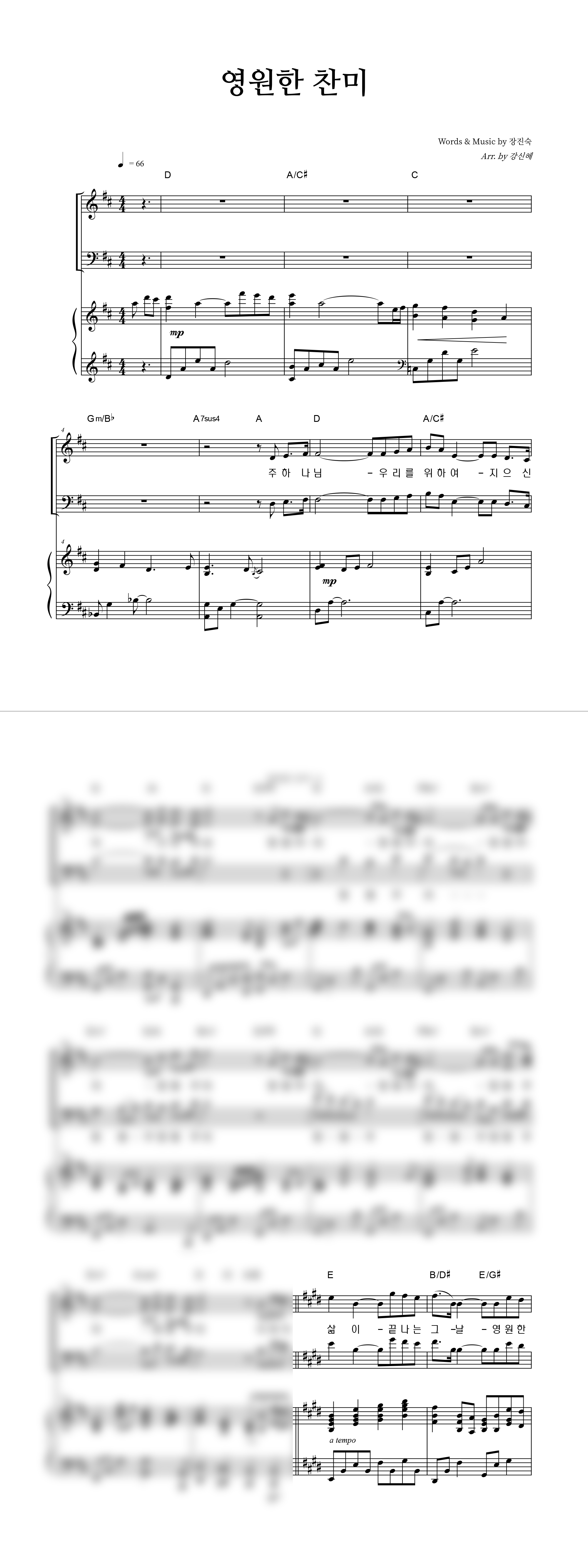'영원한 찬미' 의 다른 악보형식