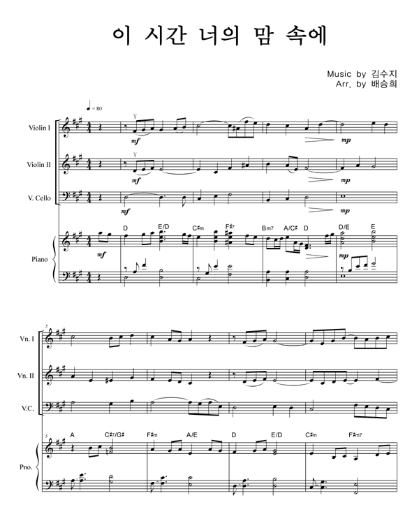 '이 시간 너의 맘 속에' 의 다른 악보형식