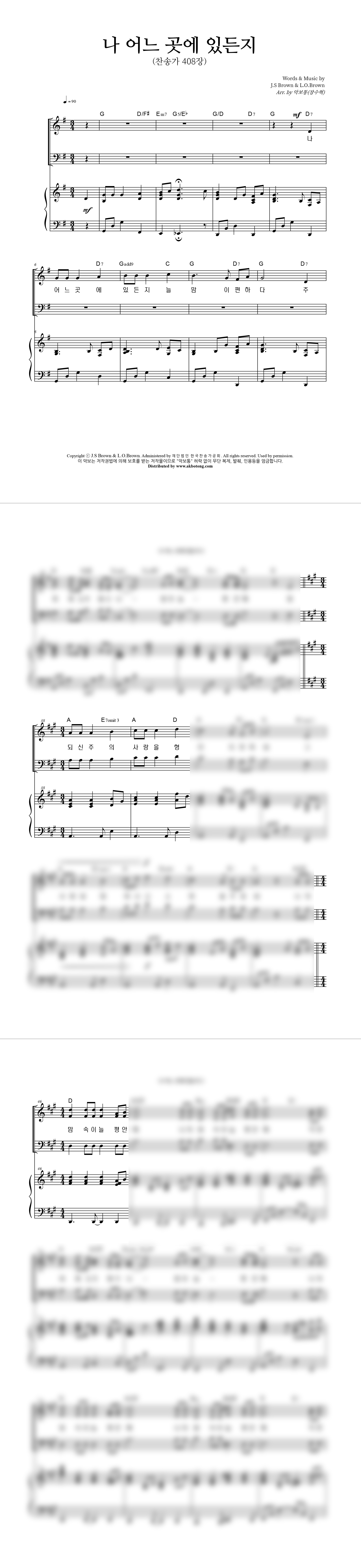 '나 어느 곳에 있든지' 의 다른 악보형식