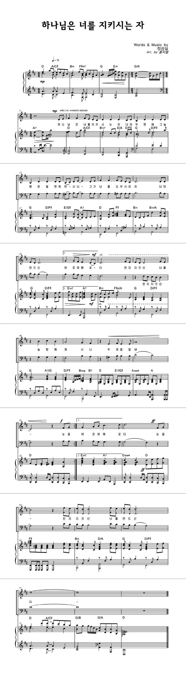 | 하나님은 너를 지키시는 자 | 성가 2부 + 피아노 반주 |