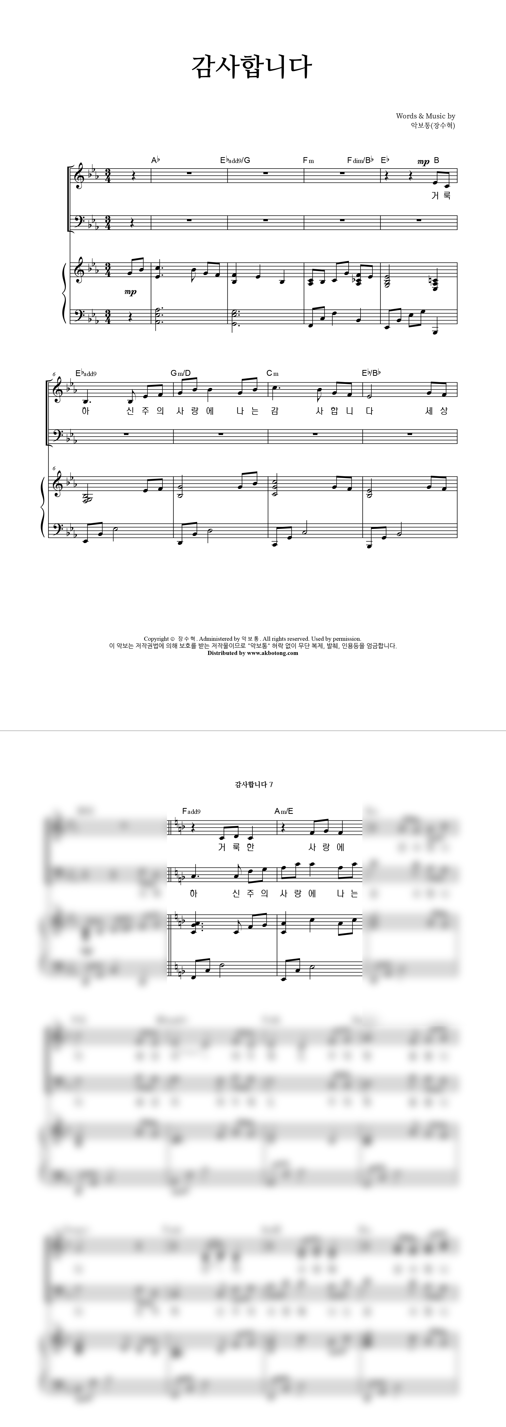 '[2025 추수감사절 신곡] 감사합니다' 의 다른 악보형식