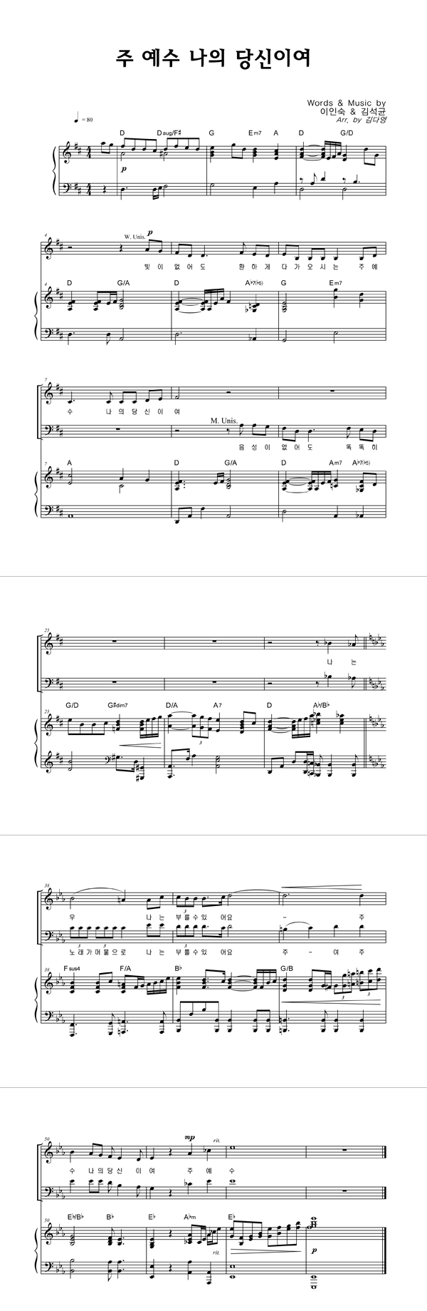 | 주 예수 나의 당신이여 | 성가 2부 + 피아노 반주 |