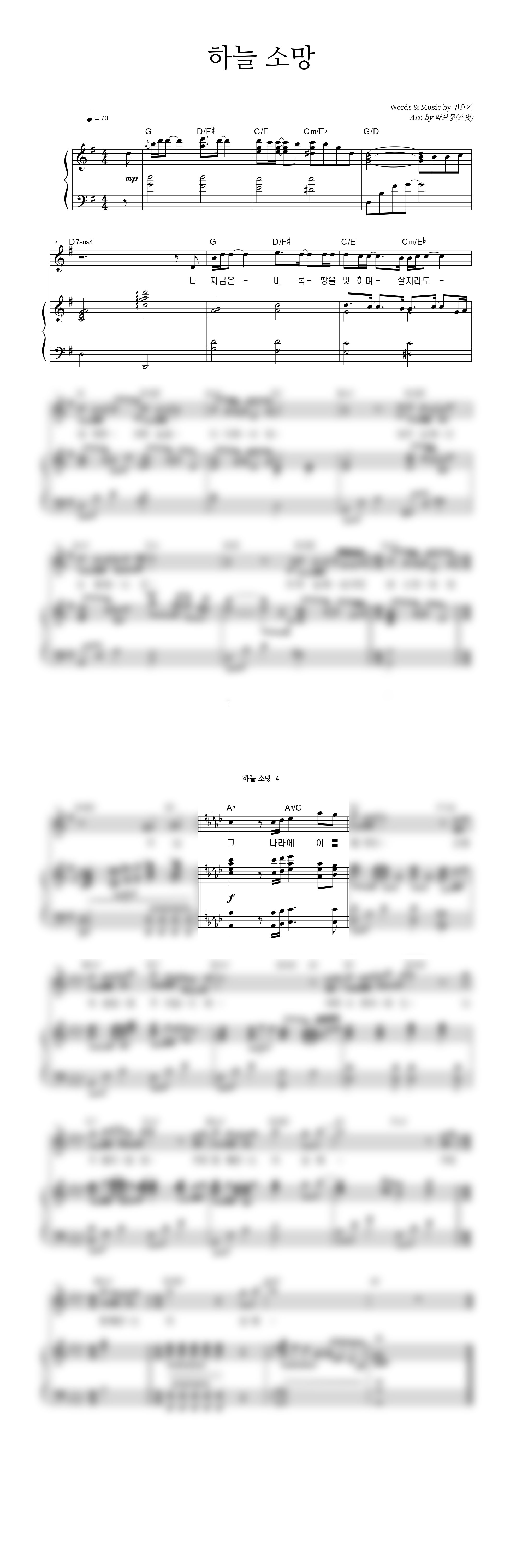 '하늘 소망' 의 다른 악보형식
