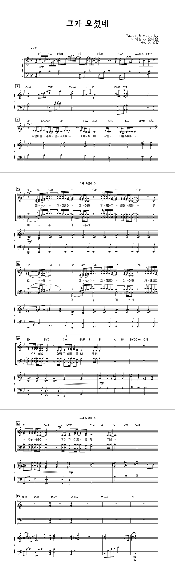 | 그가 오셨네 | 성가 2부 + 피아노 반주 |