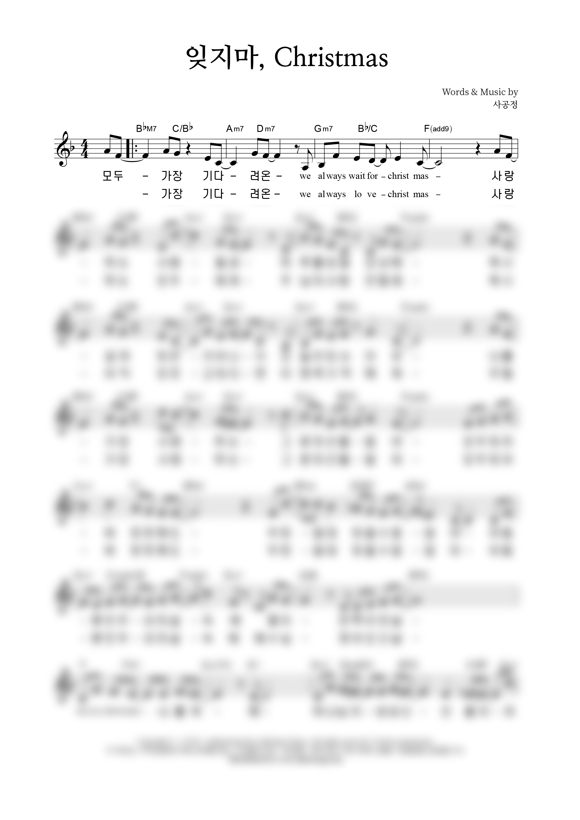 '잊지마, christmas! (Feat. 웨이홈)' 의 다른 악보형식