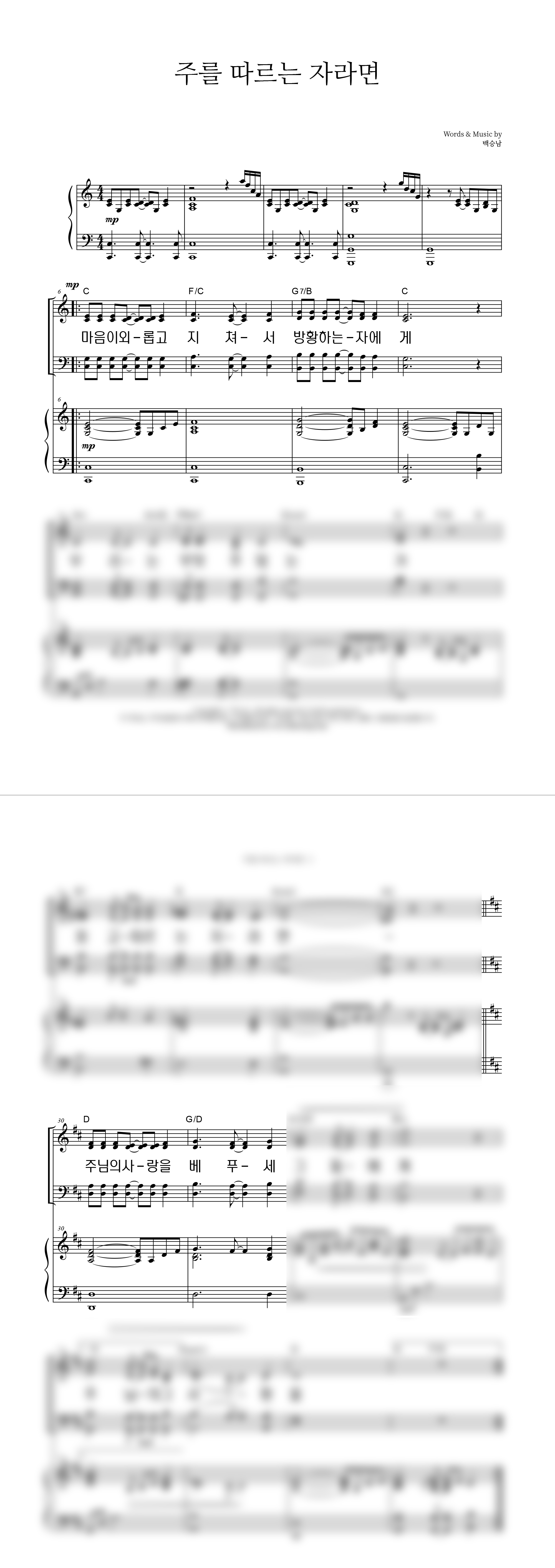 | 주를 따르는 자라면 | 성가 4부 + 피아노 반주 |