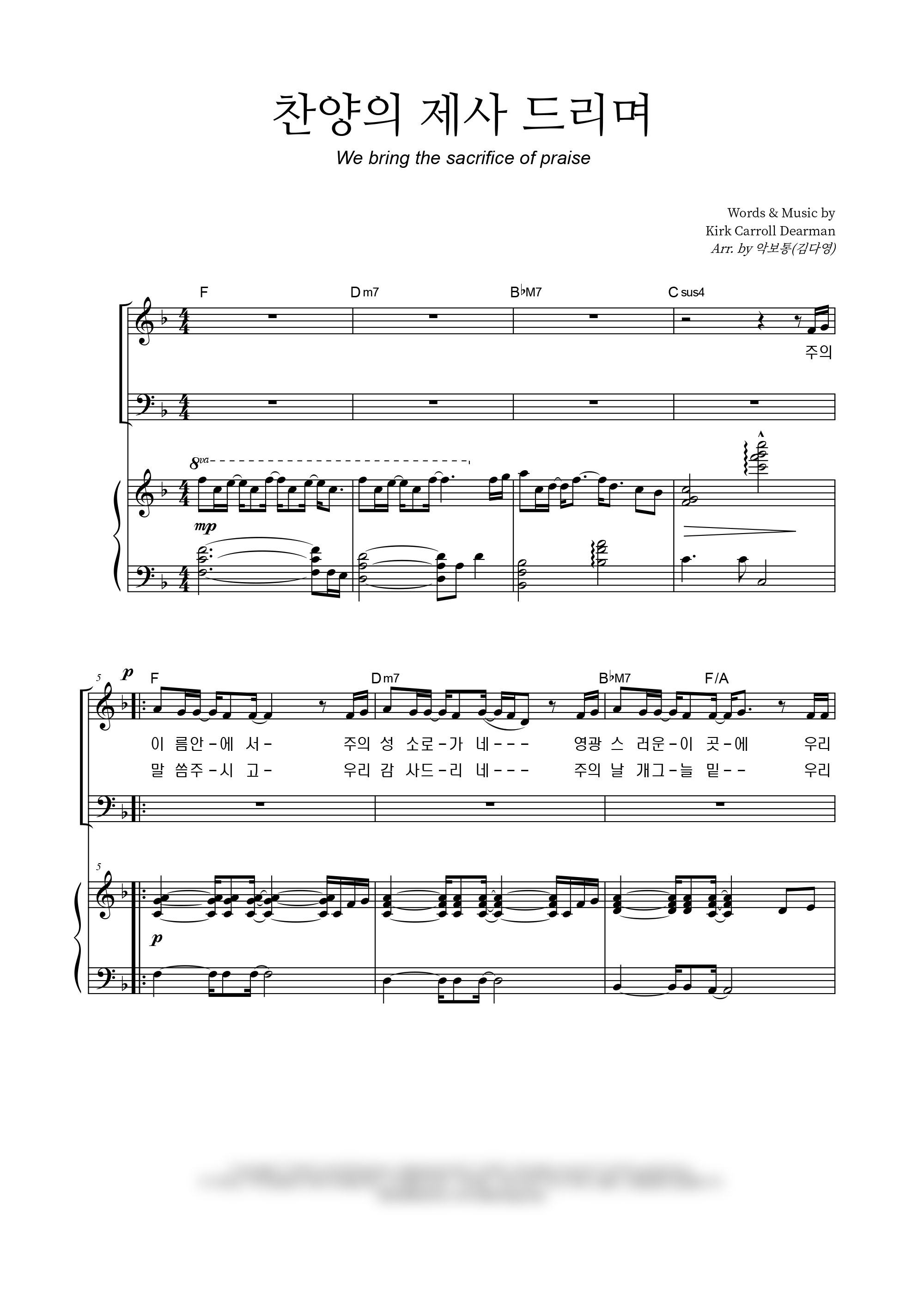 | 찬양의 제사 드리며 | 성가 2부 + 피아노 반주 |