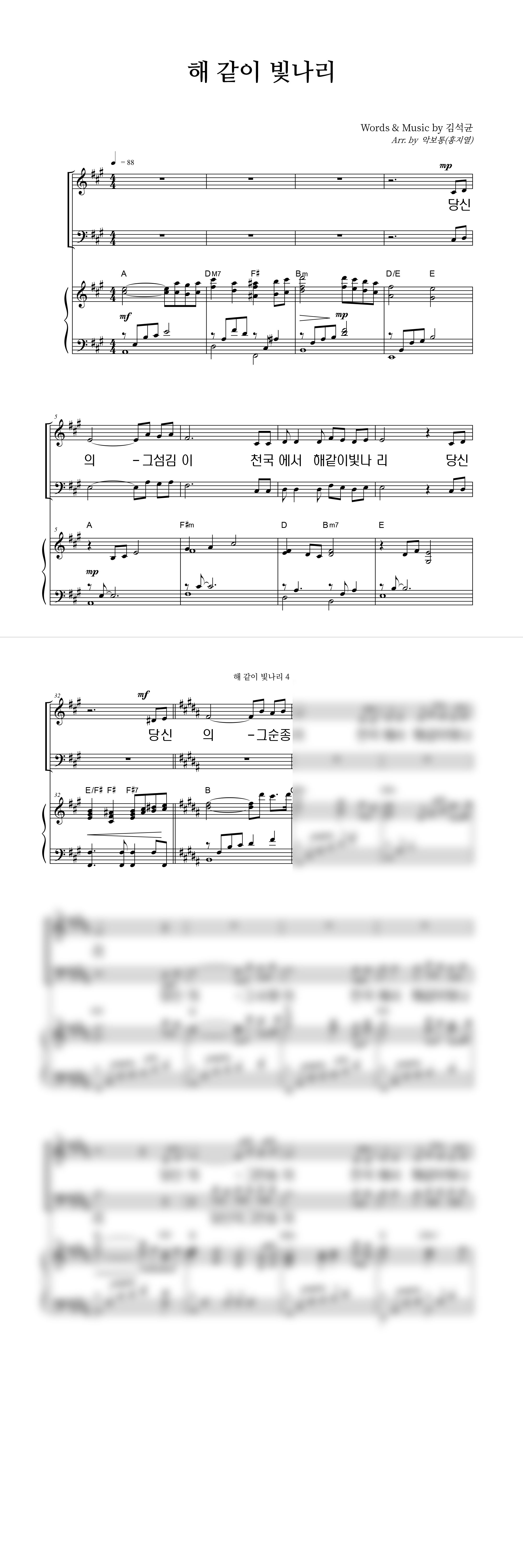 | 해같이 빛나리 | 성가 4부 + 피아노 반주 |