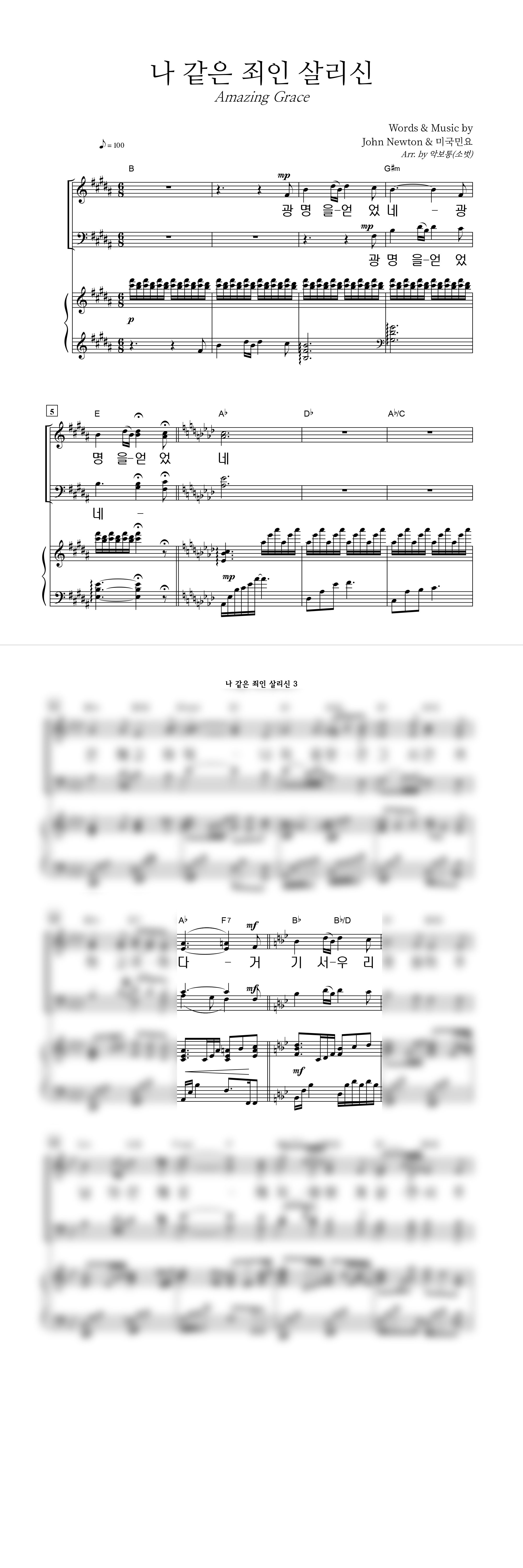 | 나 같은 죄인 살리신 (찬송가 305장) | 성가 3부 + 피아노 반주 |